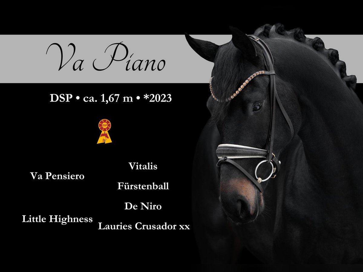 Dear Interested Parties, I am happy to send additional videos via WhatsApp at +49 171 3438949. For arranging trial rides, please send me a WhatsApp message. During the day, I am available via WhatsApp for further questions, and you can reach me best by phone between 4 PM and 7 PM. I look forward to hearing from you. www.angelina-devittorio.de ⭐️Va Piano⭐️ Age: 3 years (2023) Height: approximately 16.1 hh Pedigree: Va Pensiero x De Niro Training level: Currently being backed (in the process of being ridden) Health certificate: Up-to-date, very good health certificate including excellent X-ray images available For sale is a beautiful three-year-old stallion by Va Pensiero – a stunning young horse of exceptional quality. Here, an extraordinarily calm, brave, and friendly horse is developing, which brings joy and fun every day. He impresses not only with his charming demeanor but especially with his excellent basic gaits: ✨ Outstanding walk ✨ Very good trot mechanics with plenty of natural impulsion ✨ Very good canter with balance and potential Va Piano is well-developed for his age and has been lunged successfully. He is already familiar with rider’s weight in a playful manner and proves to be an absolute model student. Currently, he is being gently backed and ridden in our care – and he is consistently well-behaved, reliable, and clear-headed in every situation. You can easily mount and dismount alone, and he is a pleasure to handle. He can of course stay with us for further training and can also be castrated on-site. An absolutely well-behaved and friendly horse that will make his future owner very happy. He is completely non-hormonal and stands calmly next to mares. His beautiful exterior attracts everyone’s attention. If you are looking for a highly talented, stunning, and uncomplicated young horse with potential for the big arena, you will definitely find it here. His pedigree speaks for itself: He comes from a very good mare line with successful sport offspring.