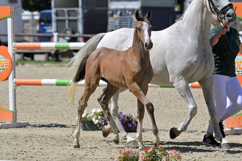 **Sales Advertisement: German Sport Horse - Stallion** For sale is a promising stallion, a German Sport Horse, born in May 2025. Bacardi impresses not only with his appealing appearance but also with his elastic and powerful movements. He is sired by Baggio×Calumet and was awarded gold at the foal show. Additionally, he was crowned as the champion foal. At the foal championship, he consistently achieved scores above 8 (overall 8.12). A whole range of successful stallions such as Cornet Obolensky, Baloubet du Rouet, Casall, and Limited Edition can be found in his pedigree. Bacardi has mastered the foal ABC and is growing up in a herd. He can also be sold as a gelding. His full sister (3 years old) has shown good manners and technique while free jumping and is currently being gently started under saddle.