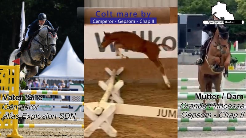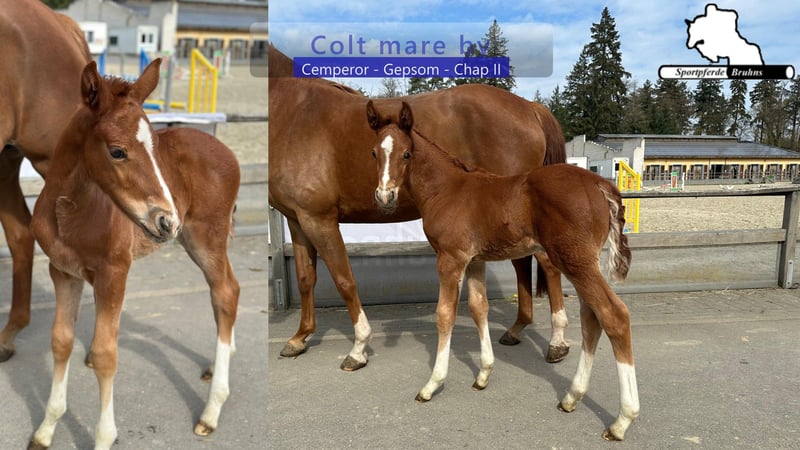 Sportpferde Bruhns: 0(049) 173 / 75 82 768, www.sportpferde-bruhns.de, email:sportpferde.bruhns@aol.com Hengstfohlen geb. 22.03.2026 von Cemperor - Gepsom - Chap II, 1 Monat alt auf dem Video, Colt born 22.03.2026 by Cemperor - Gepsom - Chap II, 1 month old on the Video, Weitere Verkaufspferde auf www.pferdeverkaufsmarkt.de Unsere Hengststation: https://youtube.com/playlist?list=PLyBHusjG9UXqSSpriw2tFl38bsmOkEiOY Unsere Partner: CWD Deutschland https://eu.cwdsellier.com/de/ Harald Bruhns GmbH https://bruhns-gmbh.de PFG - Physio for goldjumpers https://www.physio-for-goldjumpers.de