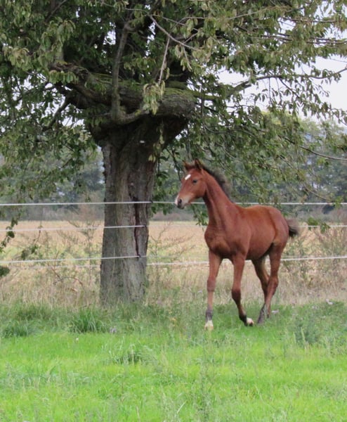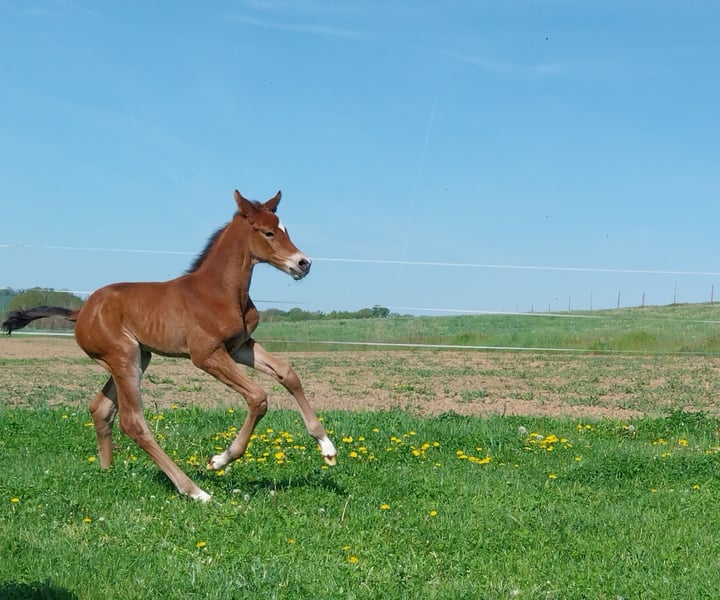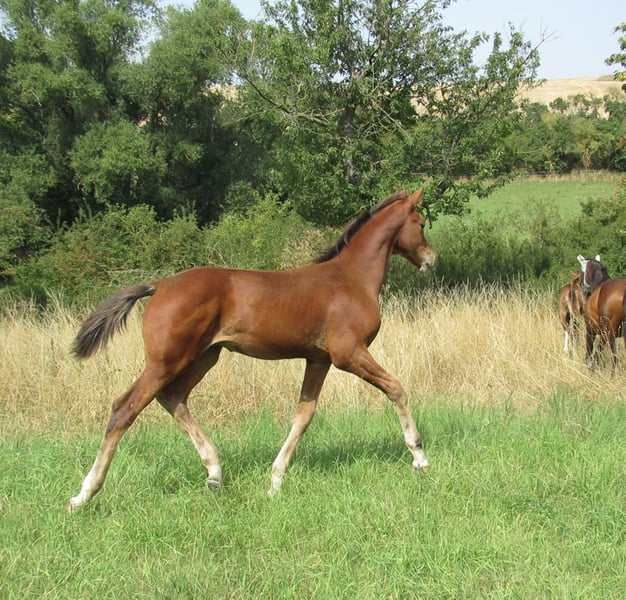 Sprzedajemy dużego i mocnego ogierka od ogiera holsztyńskiego Chinchero. Ma świetnie ułożony galop w górę, co zapowiada wysoki komfort jazdy w przyszłości. Również krok i stęp są bardzo dobrej jakości. Jego matka przez całe życie była klaczą hodowlaną i zawsze rodziła źrebięta premiowane. Sama jest wpisana jako klacz z premią związkową i wyróżnia się krwistym eksterierem. W związku z tym można również oczekiwać przydatności do sportów wszechstronnych. Możliwość wychowania jest możliwa. Spotkanie jest również możliwe w każdej chwili po wcześniejszym uzgodnieniu.