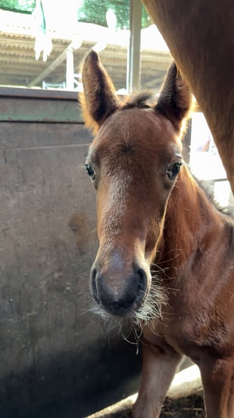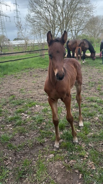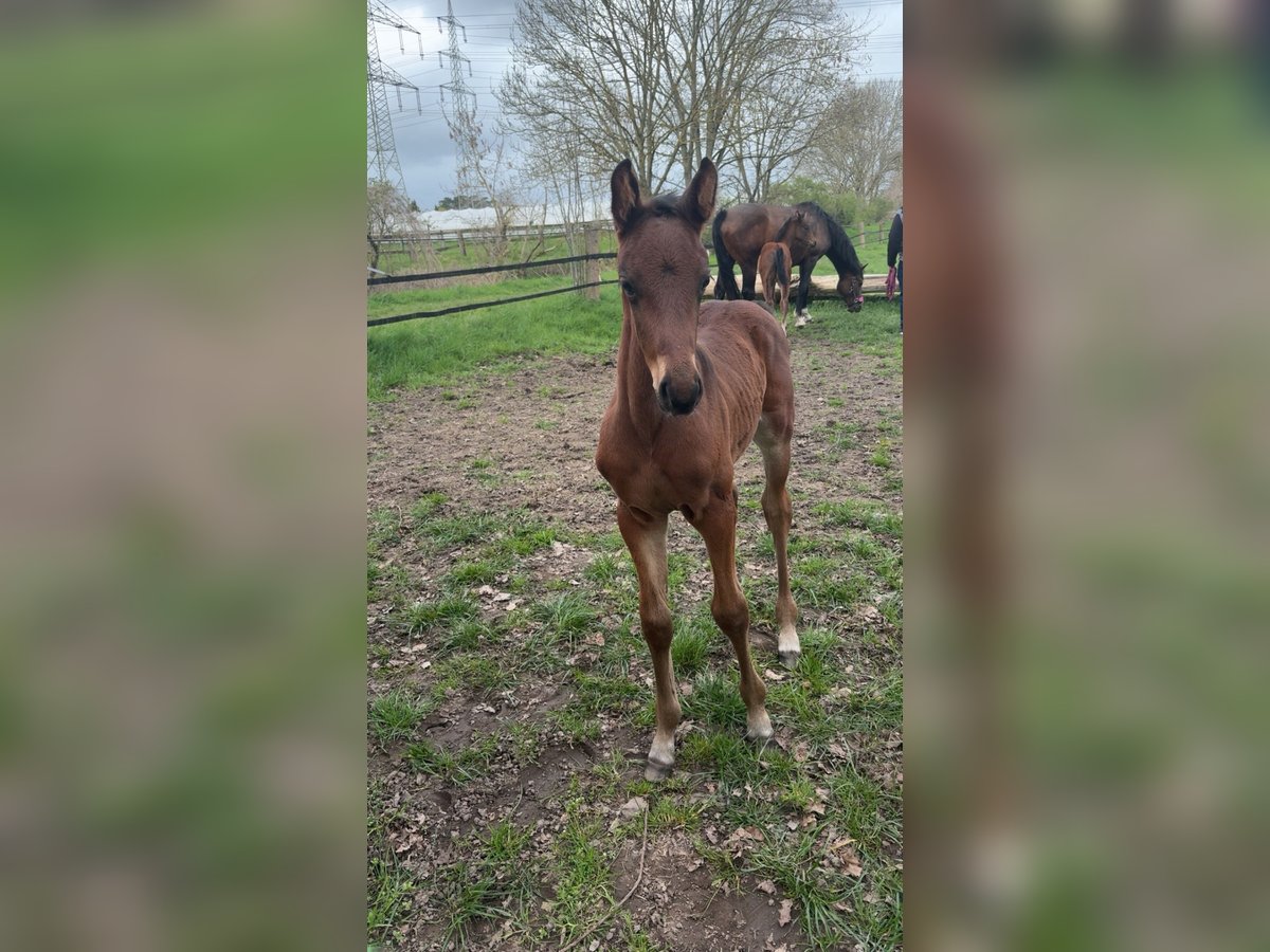 Charmantes Hengstfohlen mit Top-Abstammung – sportlich & menschenbezogen Zum Verkauf steht ein sehr ansprechendes, braunes Hengstfohlen, geboren am 19.03.2026, aus eigener, liebevoller Zucht. Der junge Hengst überzeugt durch seine harmonische Aufmachung, korrekte Beinstellung und einen ausdrucksstarken, typvollen Kopf. Er besticht durch sein edles, einheitlich braunes Erscheinungsbild und lediglich dezente weiße Abzeichen an den Füßen, was ihm eine besonders elegante Ausstrahlung verleiht. Charakterlich ist er neugierig, freundlich und menschenbezogen. Er kennt den täglichen Umgang, wächst artgerecht im Herdenverband mit seiner Mutter auf und präsentiert sich aufmerksam, ausgeglichen und lernwillig – ideale Voraussetzungen für eine erfolgreiche Zukunft im Springsport. Abstammung: Oreal des Etains Z x Grandofornio S x Corofino → Leistungsstarke Springgenetik mit viel Vermögen, Technik und Vorsicht Details: - Hengstfohlen - Braun mit weißen Abzeichen an den Füßen - geb. 19.03.2026 - Artgerechte Aufzucht im Herdenverband - Brav im Umgang, aufgeschlossen und menschenbezogen Ein vielversprechendes Nachwuchspferd für ambitionierte Reiter oder Züchter, die Wert auf Qualität, Charakter und Perspektive legen. Bei Interesse freuen wir uns über eine Nachricht. Besichtigung jederzeit nach Absprache möglich.