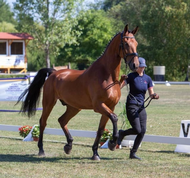 Matisse es un verdadero placer para montar. Está entrenado en doma hasta la categoría M, ha sido guiado en carro y conoce el trabajo de volteo. Sin embargo, no es un caballo fácil y puede volverse bastante enérgico en ocasiones. No da coces ni intenta montar, pero puede volverse firme y, en esos momentos, no es fácil de girar. Por ello, se ofrece a un precio claramente inferior a su valor real. No es un caballo para principiantes. En mi experiencia, una jinete de 14 años lo monta sin problemas de forma regular. Es recomendable que esté en paddock o en un paddock todo el día. Con paciencia y confianza, es un caballo maravilloso. SOLO SE ACEPTAN CONSULTAS POR TELÉFONO