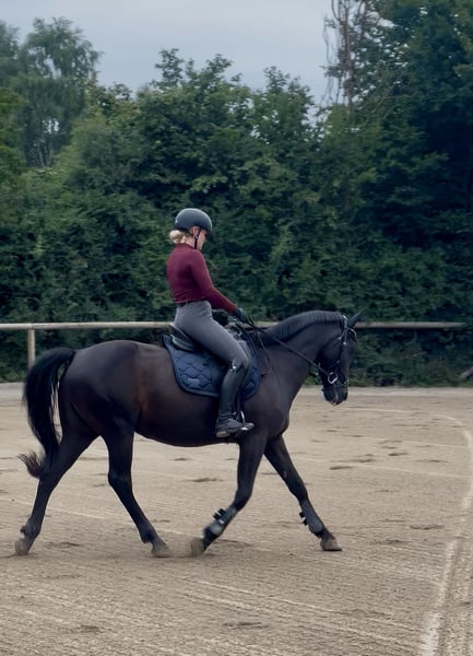 Chocolat Mi Amer – a horse with character A well-behaved 13-year-old gelding who impresses with his willingness to work. He is currently being ridden at A-level with room for further development. He also enjoys jumping. Work-oriented and eager to please, but he can also test boundaries. Not a push-over. Additionally, he is a therapy horse and loves children. Farrier- and loading-trustworthy, no bucking or rearing, well-behaved at competitions. Only available to the best of hands ❤️