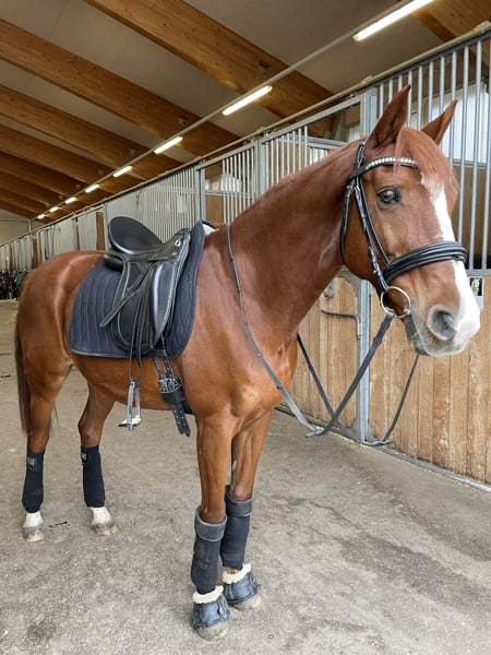 Ich verkaufe meinen lieben Fuchs-Wallach an Bestplatz - Platz vor Preis In der Dressur ist er auf dem Ausbildungsstand LP, wurde bis LM am Turnier vorgestellt. Im Springen wurde er bis 95 cm vorgestellt. Vom Boden aus ist er absolut brav, lieb und verschmust. Er ist schmiede- und verladefromm. Er ist ein sensibler, eher ängstlicher Typ, dabei aber nicht böse – er steigt nicht und geht auch nicht durch. Mit einem ruhigen, sicheren Reiter, der ihm Vertrauen gibt, ist er ein wunderbarer Partner, ich kann ihn mir auch für Anfänger vorstellen, solange diese selber keine Angstreiter sind. Er liebt das Ausreiten. Daher wünsche ich mir jemanden der dies genauso liebt wie er und in der Dressur vielleicht noch etwas dazu lernen will. Denn er zeigt gerne was er kann solange er dies nicht jeden Tag machen muss ;) Aufgrund seiner sensiblen Art waren wir am Springturnier nicht immer erfolgreich. Jedoch liebt er das Springen zu Hause, so lang es auf Reiternadel Niveau bleibt. Ich wünsche mir für ihn einen Platz, wo er geliebt wird, regelmäßig ins Gelände darf und weiterhin gefördert wird, ohne Turnierdruck. Absolut Platz vor Preis