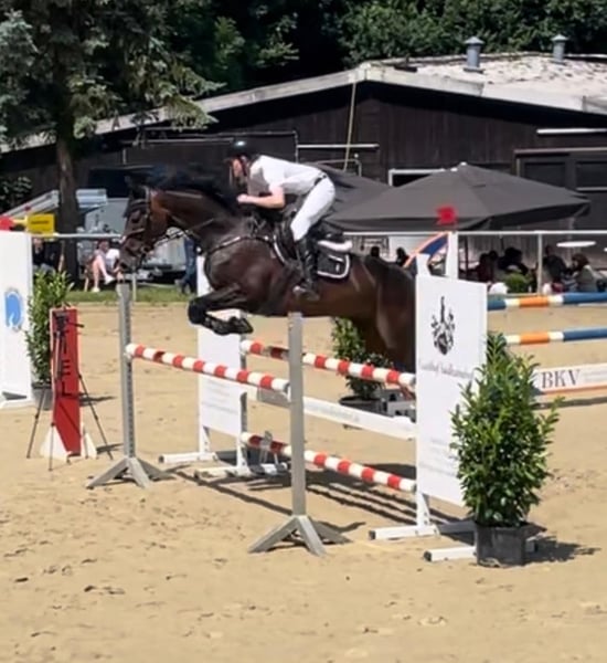 Zum Verkauf steht ein sehr hübscher, langbeiniger Wallach. Er wurde überwiegend als Springpferd eingesetzt und war erfolgreich auf Turnieren bis L-Springen unterwegs, mit Platzierungen bis A** und im Training bis M-Springen. Neben seiner Springqualität überzeugt er durch drei sehr gute Grundgangarten, wodurch er auch im Dressurbereich super einsetzbar ist. Er ist hier auf gutem L-Niveau und beherrscht u. a. auch einige M-Lektionen. Durch seine Erfahrung und sein ruhiges, zuverlässiges Wesen ist er absolut kinder- und amateurgeeignet und ein super Lehrmeister. Außerdem ist er bereits auch schon einen Reiterwettbewerb mit einem Kind sehr brav gegangen. Auch im Gelände zeigt er sich ausgesprochen unkompliziert, brav und sicher, weshalb er ebenso ein toller Freizeitpartner ist - auch für weniger erfahrene Reiter. Zudem kennt er Geländehindernisse und ist auch schon eine Jagt erfolgreich mitgelaufen. Im Umgang ist er ebenso absolut brav und unkompliziert: verladefromm, schmiedefromm, sehr sozial und verträglich mit anderen Pferden. Er steht aktuell in der Box und kommt regelmäßig gemeinsam mit einer Stute auf die Koppel. Er verfügt über gute Hufe, ist gesund und sucht nun einfach ein liebevolles Zuhause - sei es als Lehrmeister, Familienpferd oder vielseitiger Allrounder. Bei Interesse oder weiteren Fragen gerne per WhatsApp an 01725130774 oder an 015736484517