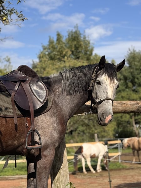 Verkaufe ungarisches Sportpferd – Wallach, Geburtsjahr 2021, Apfelschimmel, Stockmaß ca. 160 cm Dieses elegante und vielseitige Pferd ist der perfekte Begleiter für Freizeit und Hobby. Der ungarische Wallach überzeugt durch sein freundliches Wesen, seine gute Grundausbildung und seine angenehme Größe. Das hübsche Apfelschimmel-Farbschema macht ihn zu einem echten Blickfang. Er ist gut im Umgang, vertraut im Gelände und eignet sich ideal für Reiter, die ein zuverlässiges Freizeitpferd suchen. Für weitere Informationen und einen Kennenlerntermin stehe ich gerne zur Verfügung.