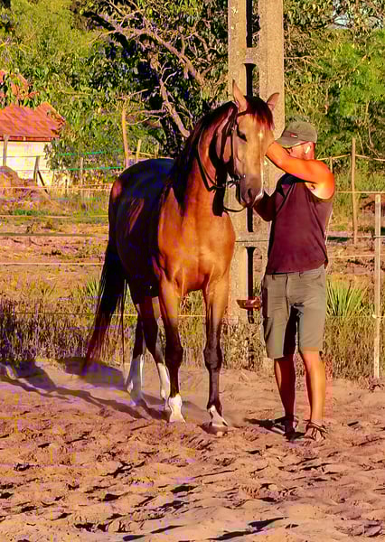 4yr old bucksin gelding for sale. Talented, open character warmblood, ready to to be ridden in most any discipline. Trained according to classical principles, with natural horsemanship approach. Introduced to the bit recently without any problems. Basic lateral work, shoulders-in/out, haunches-in/out. Can do schoolhalt and the beginnings of passage. With the right guidance he can be a dreamhorse to the right horseman. Used to regural hoofcare, been trimmed a lot in liberty. 158cm at the withers. Feel free to contact me on WhatsApp for up to date info on Darius!
