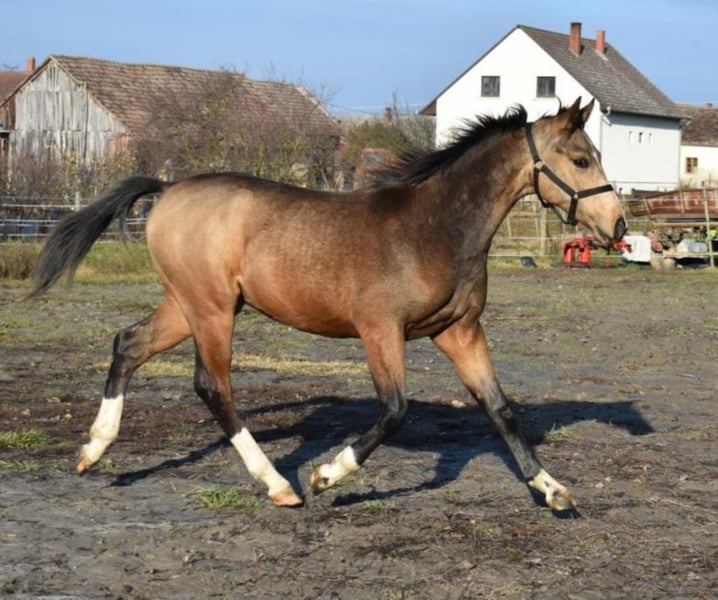Colt Falbe (Buckskin) di 2 anni in vendita direttamente dall'allevatore. Ha un esercizio extra. 30 anni al servizio dell'allevamento di cavalli! Abbiamo diversi riferimenti nell'UE!
