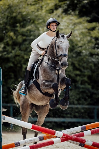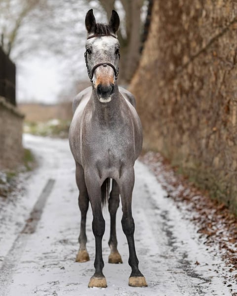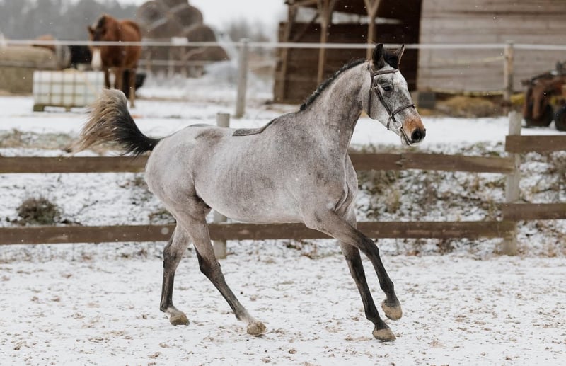 Grauer Wallach, ca. 167 cm, vielversprechende Abstammung. Ehrlich, mutig und einfach im Umgang. Ausbalancierte, rhythmische Grundgangarten mit großem Potenzial unter dem Sattel. Sehr menschenbezogen, mag die Interaktion, ist an allem interessiert wie ein Baby. Springt seit dem Sommer, kleine Parcours absolviert, ehrlicher, kraftvoller Sprung mit Vermögen für den Springsport. Im täglichen Umgang unkompliziert: Verladen, Hufschmied, Waschen. Röntgenbilder vorhanden. 📍 München WhatsApp: +49 152 31434794