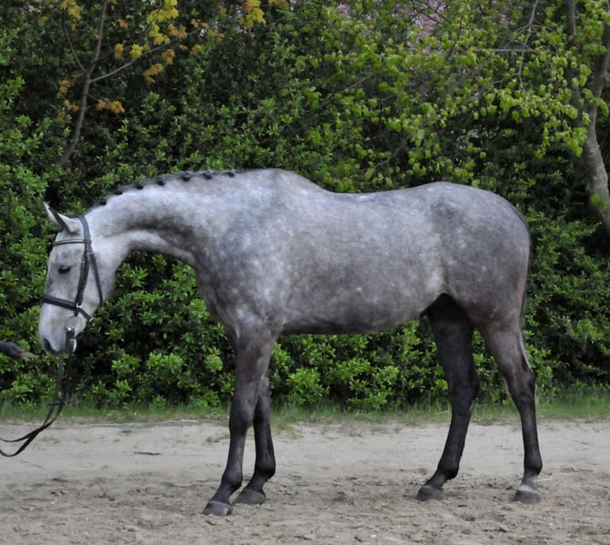 Bellissimo puledro da dressage, pronto per essere montato e iniziato subito.