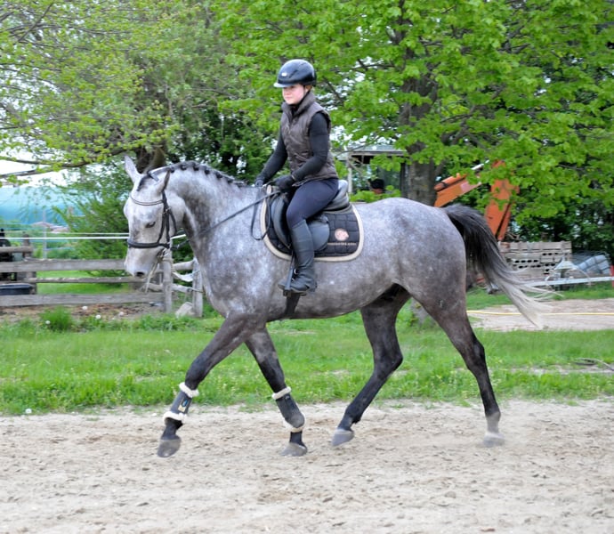 Er ist unkompliziert im Umgang und ganz brav beim Reiten. Er macht Spaß in der täglichen Arbeit, geht artig ins Gelände und ist dabei stets händelbar. Er ist weder schreckhaft noch guckig, springt alles und verfügt über genügend Vermögen. Seine ersten Turnierstarts hat er bereits brav gemeistert. Er ist herdenverträglich, kennt sowohl Offenstall- als auch Boxenhaltung mit täglichem Koppelgang. Zudem ist er schmiede- und verladefromm. Er ist völlig gesund, hat keinerlei Unarten, und aktuelle, gute Röntgenbilder liegen vor. Ein Probereiten ist nach telefonischer Terminvereinbarung möglich. Weitere Infos und Videos gerne per WhatsApp.