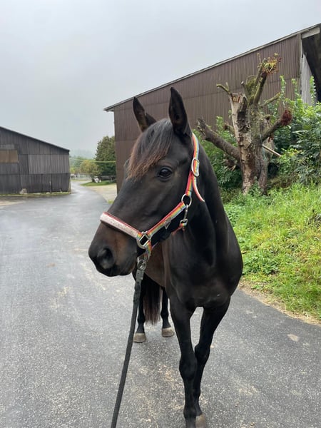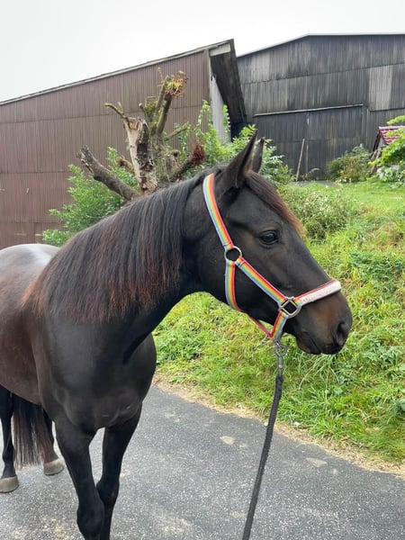 Junger, sehr unerschrockener Wallach zum weiter ausbilden. Carlitos ist ein 5 jähriger ca 150 cm großer Wallach mit tollem Charakter der durch sein unerschrockenes Wesen überzeugt. Ein Pferd, dass stets versucht unter dem Sattel als auch im Umgang alles richtig zu machen. Er steht zusammen mit einem Wallach auf der Koppel und zeigt sich sehr verträglich. Kinder, Traktoren und Geräusche interessieren ihn kaum. Bei uns gedacht für den Schulbetrieb sucht er aber dennoch seinen Menschen. Da unsere Schulpferde höchste Pflege und Aufmerksamkeit genießen möchten wir für Ihn den idealen Partner finden. Unser „Bubi“ ist selbstverständlich geimpft (Tetanus) und entwurmt und wurde auch regelmäßig bei der Physio vorgestellt. Sehr gerne kann er nach Absprache probe geritten werden. Hier erlauben wir uns eine Gebühr von 30 Euro zu veranschlagen die dem Kaufpreis bei Gefallen selbstverständlich wieder abgezogen wird. Sehr gerne können wir telefonisch alles genau abstimmen. Dies ist kein Notverkauf. Alle beschriebenen Eigenschaften sind unsere Beobachtung ohne Garantie oder Gewährleistung