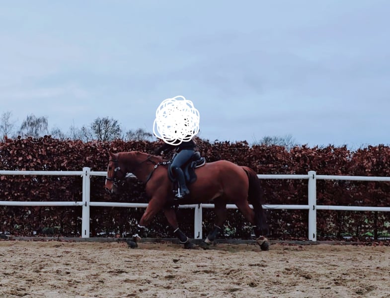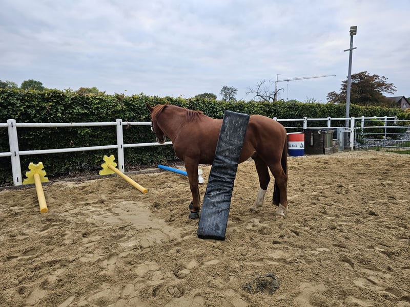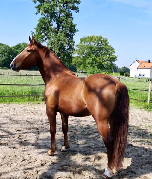 Mambo sucht eine neue Bezugsperson die Ihn regelmäßig bewegen und sich mit Ihm beschäftigen kann, was mir und meiner Mutter aus zeitlichen und gesundheitlich Gründen leider nicht mehr in dem Rahmen möglich ist, wie es für Ihn am besten wäre. Er kennt Bodenarbeit (Stangenarbeit, Freispringen, Gelassenheitstraining und Zirkuslektionen), aber am allerliebsten ist er zufuß, geritten oder gefahren im Gelände unterwegs. Er ist ein- und zweispännig ausgebildet worden und wurde bis vor knapp 1 1/2 Jahren regelmäßig gefahren, was wir danach leider nicht mehr fördern konnten (eine Kutsche liegt uns für eine Probefahrt nicht vor). Er ist kein Kinder- oder Anfängerpferd, da er u.a. altersbedingt schon mal ein kleiner Sturkopf sein kann. Unterm Sattel benötigt er einen sicheren, klaren, konsequenten, und durchsetzungsfähigen Reiter. Er ist grundsätzlich eher der gemütliche Typ, lässt sich mit 1,2 klaren Ansagen/Bitten aber schnell überzeugen und mit Leckerchen auch nur zu gerne bestechen. Er ist neugierig, sehr schlau und manchmal frech. Vor allem dann, wenn ihm langweilig wird, er keine Lust hat oder man zu viel Druck macht. Er ist gesund, hat keinerlei Probleme wie bspw. Ekzem oder ähnliches und wurde regelmäßig entwurmt (zuletzt März 2026). Er ist aktuell voll beschlagen, er kennt aber auch Barhuf und Teilbeschlag. Aktuell steht er tagsüber Weidegang & Paddock mit Heuraufe und nachts in der Box. Verkauft wird er inclusive Equipment und Zubehör. Hierunter fallen bspw. : - Fliegen-, Regen-, Abschwitz- und Winterdecken - Sattel (Baumlos, Barefoot Barrydale mit englischen Steigbügeln und Riemen sowie Westernfendern und Steigbügeln zum auswechseln) + Ersatzschabracke - Bauchgurt von Passier und Barefoot - Wanderreittrense und normale englische Trense - Vorderzeug, Gamaschen etc. 7,500€ VB Platz vor Preis Bei ernsthaftem Interesse freue ich mich über eine Nachricht mit kurzer Vorstellung.