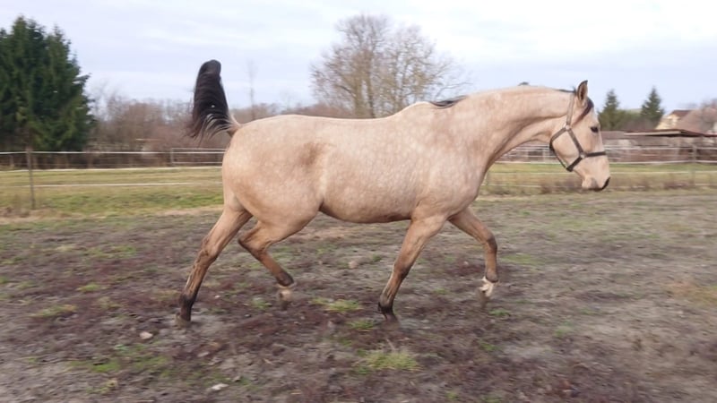 Puszedli will be 3 years old in spring (2022). It is falbe (buckskin) and can be sold directly from the breeder. Father is Páholy - jumping horse in class S. He has not yet ridden in, but goes on the lunge, very well-behaved and diligent. 30 years in the service of horse breeding! We have several references in the EU!