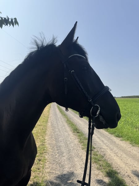 I am offering my 7-year-old Warmblood gelding (approx. 16.1 hh) for sale. He is a fantastic horse – confident, personable, and always riding with heart. Description: This gelding impresses with his elegant appearance, eagerness to learn, and balanced temperament. He is at the beginning of his training and shows great talent, motivation, and willingness to work. Despite his young age in training, he always strives to do his best and learns quickly. In daily handling, he is straightforward, friendly, and pleasant – a true reliable partner in his development. Suitability: Ideal for riders who enjoy furthering a wonderful horse’s education and growing together – whether for leisure riding, dressage, or as an all-rounder. Special features: - Age-appropriate backing and training - Regularly introduced to the farrier and veterinarian - No bad habits, well-behaved in the field - Complete tack included in the price (e.g., saddle, bridle, blankets, etc.) - Reluctantly offered due to family reasons To prevent riding tourism, a fee of €30 will be deducted from the purchase price. If genuinely interested, I look forward to calls or messages. The horse can be viewed and tested riding by appointment at any time. He is meant to find a loving and nurturing new home.