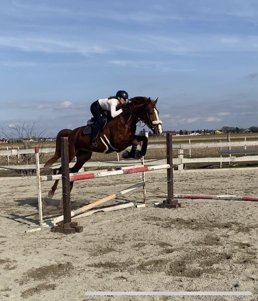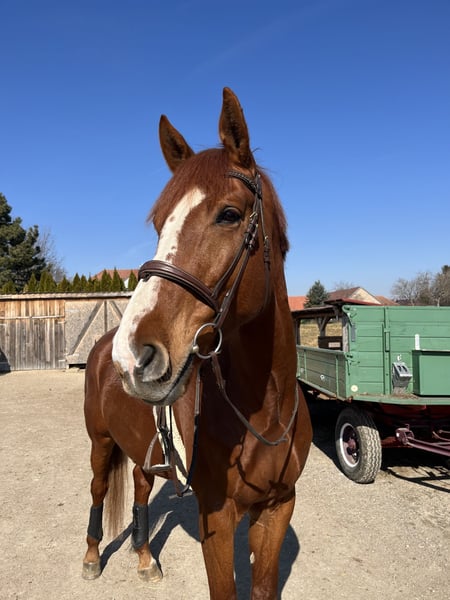 Z ciężkim sercem sprzedaję mojego 8-letniego wałacha Gidran Sero, około 1,82 m wzrostu. Od ponad 3 lat jest pod moją opieką i zna wszystko, co potrzebne idealnemu partnerowi rekreacyjnemu. Jest lekko jeżdżony w ujeżdżeniu, skacze przez zmiany, zna wszystkie półstrony, proste zmiany… Do startów na turnieju plasował się do 95 cm i zawsze zachowywał się na nich bardzo grzecznie. Najczęściej jeździłem z nim sam, wsiada na przyczepę, zostaje spokojnie sam i jest bardzo łatwy w obsłudze na co dzień. Podczas wyjazdów na teren to marzenie – odważny i nieustraszony, zarówno sam, jak i w grupie, bardzo dobrze radzi sobie w terenie. Jeździłem na nim wielokrotnie na treningach wszechstronnych, wchodzi do wody i uwielbia jazdę w terenie. Można na nim jeździć bez siodła, na kantarze, potrafi kilka sztuczek i na pewno będzie idealnym koniem rodzinnym – jest gotowy na różne psikusy! Można go także jeździć przez słabszego jeźdźca, zawsze jest łagodny i troszczy się o swojego człowieka. W ciągu dnia przebywa w stadzie, nocuje w paddock boxie, jest bardzo towarzyski. Sprzedaję go tylko dlatego, że choć jest świetnym wszechstronnym koniem, nie jest odpowiedni do wyższych skoków. Filmy chętnie wyślę pod numer 06603676573, możliwe jest również jazda próbna (20 €).