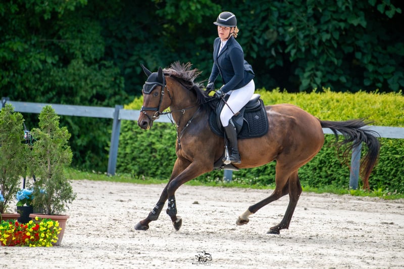 Altezza netta di 164 cm. Cavalla di 4 anni. Tenuta insieme ad altri cavalli, occupa l'ultimo posto nella gerarchia. Può essere trattata, pulita e sistemata facilmente. Natura calma e equilibrata. Comoda per le passeggiate, può essere montata sia davanti che dietro ad un altro cavallo, anche con bambini. Ha già iniziato la sua carriera nel salto ostacoli e attualmente compete a 90 cm. Con ulteriore addestramento ha la capacità di competere a livelli superiori. Sono il proprietario da quando aveva 6 mesi. Ha la sua documentazione e passaporto equino genealogico. Rifilata ogni 7 settimane, ha tutte le vaccinazioni richieste e ha superato un controllo radiografico pulito. Situata in Ungheria, Contea di Vas, Körmend vicino al confine austriaco.