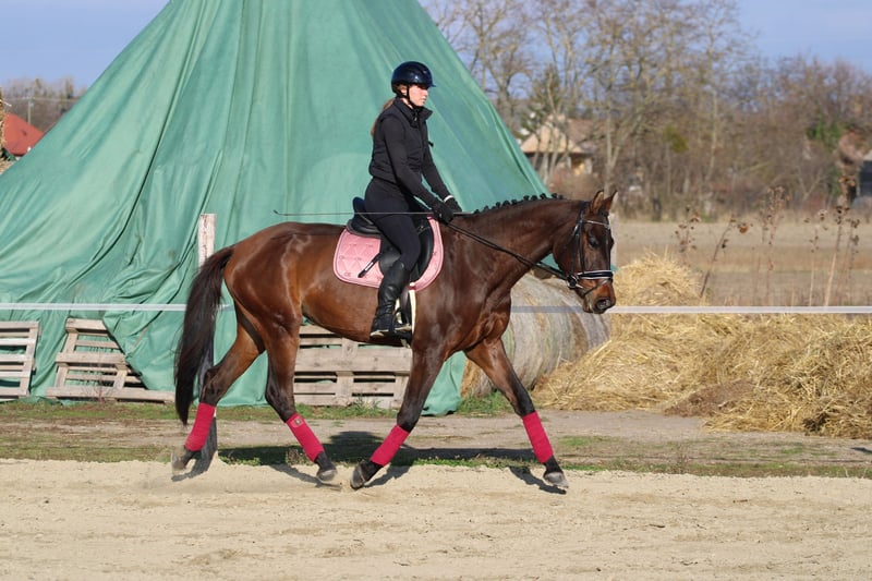 This delightful-natured mare is perfectly suited for competitive sport. She is kind, patient, and possesses an unshakeable temperament with a naturally calm, pleasant disposition. Exceptionally well balanced, she learns quickly, is consistently cooperative, and never resists her rider. An ideal choice for children and less experienced hobby riders as well—perfect for both safe enjoyment and for beginning a sport career. Even in unfamiliar environments or situations that might seem intimidating from a horse’s perspective, she remains steady and predictable. She is accustomed to traffic, cars, strollers, and barking dogs. Offered for sale directly from her breeder, who has worked her as a riding horse, solely due to lack of capacity. She is fully prepared for competition, easily jumping courses appropriate for her age. She is confident even when distances are less than perfect, always supporting her rider with willingness and reliability.