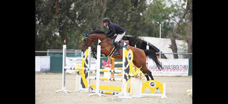 Bellissima puledra di 4 anni con un temperamento eccellente. È stata montata e ha partecipato con successo a competizioni questa stagione da una ragazza amatrice. È molto facile da gestire, confortevole da cavalcare, senza cattive abitudini, e possiede un carattere fantastico sia in scuderia che sotto la sella. Quest’anno ha iniziato la sua carriera da competizione e mostra un grande potenziale per il futuro. È adatta a bambini, giovani e amatori. Il suo padre è JB Koronaőr, che ha gareggiato fino a 160 cm con Vince Jármy. La sua madre ha gareggiato fino a 135 cm.