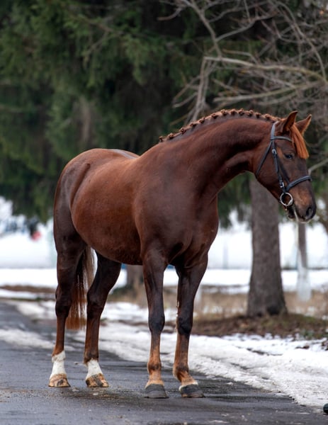 Jaték Dressage horse with stunning movement. Potential for more! Gender: Mare Age: 6 years Height: 16.1 hh Color: Dark Chestnut Jaték is a beautiful 6-year-old dark chestnut mare, who impresses not only with her lovely color but also with her gentle nature. Standing at 16.1 hh, she is perfectly suited for young riders and beginners looking for a calm, confident, and fully trained horse. 🌟 She is well-behaved, balanced, and reliable, responds delicately to aids, and remains calm at all times – whether in the arena 🌳, on trail rides 🏇, or in daily handling. Her gentle temperament makes her an ideal family horse. 💛 ⭐ Fully and safely trained under saddle ⭐ Very beginner- and child-friendly ⭐ People-oriented, well-behaved, and eager to learn +49 176 4017 7894