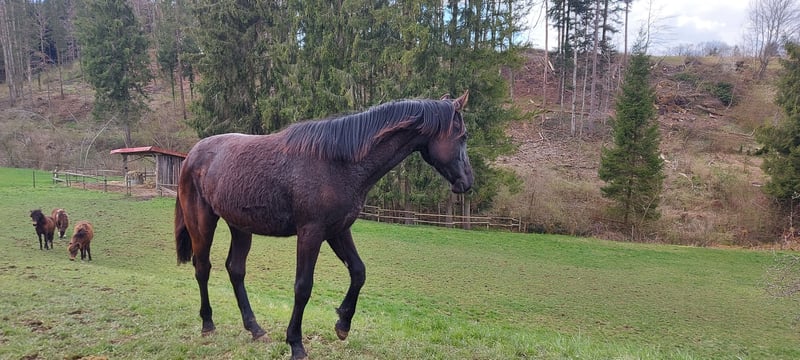 Verkaufe eine wunderschöne Stute. Stkm. 177cm, geb. 2017, eingetragene Zuchtstute. Hatte bei uns drei wunderschöne Fohlen. (Siehe Fotos) KEINE Unarten. Geht von selbst auf den Anhänger. Geimpft und entwurmt. Turnierpferderegistriert. Absolutes Verlasspferd, ob alleine, oder in der Gruppe. Nur in Beste Hände! Hervorragende RÖ Bilder von Rücken und Beinen (vom Frühjahr 2025) Nobody is perfekt. Leichtes Shivering hinten re. - beeinträchtigt das Pferd aber nicht. (Einzig beim Hufe auskratzen, kann sie ab und zu kurz krampfen.) Pferd ist beschlagen und derzeit im Training. - Auch viel im Gelände unterwegs. Nur ernst gemeinte Anfragen. VIDEOS gerne per WHATSAPP +43 664 1552819