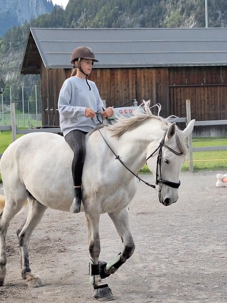 Herzlich willkommen! Kurze Info über mich. Ich bin im Reitstall bei meiner Familie in Vorarlberg aufgewachsen, 2007 habe ich die Landwirtschaftliche Fachschule in Hohenems mit dem Facharbeiter abgeschlossen. Mit 8 Jahren habe wir (ich und meine Schwester) unser eigenes Pony bekommen. 2019 habe ich mir den Wunsch vom eigenen kleinen Reitstall mit Reitplatz und Koppeln erfüllen können. Unsern Hof umfasst ein Wohnhaus mit 2 Ferien- Appartments. Wir bieten unseren Gästen Reitunterricht/ Ausritte an. Derzeit sind wir im Besitz von 4 Pferden. Zwei Haflingerpferde und 2 Warmblutpferde (Zucht) Meine Leidenschaft ist die Pferdezucht und die Teilnahme an Sportbewerben im Ländle. Wir haben zwei tolle Stuten mit sehr interessantem Pedigree und TOP Charakter! Wir legen großen Wert darauf, dass unsere Pferde "klar" sind, das heißt, von Amateur- Reitern im Gelände und auf dem Reitplatz mit Spaß und Leichtigkeit geritten werden können. Die Pferde werden regelmäßig von mir selbst ausgebildet und trainiert, damit dies möglich ist! Sehr stolz bin ich auf unseren Nachwuchs! Fürstin Pasquina Österreichisches Warmblut, geb. 2008, Stkm. 168cm (Duino x Donnerschwee x Fürst Heinrich) tragend für 2023 Österreichische Warmblutstute (Zivatar x Koppany x Burggraaf) Good Girl 2, geb. 2018, Schimmel, Stkm. 177cm, tragend von Fürst Romancier, wir derzeit von meiner Tochter (10 Jahre!) problemlos auf dem Reitplatz in allen drei Grundgangarten geritten.