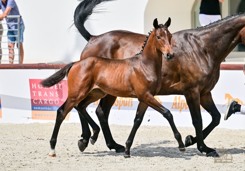 Wonder Touch VK - Hungarian sport horse filly, the champion mare of this year's hsh foal championship. The filly boasts an exceptional genetic background and outstanding potential. A beautiful looking, inquisitive, brave foal. With her excellent conformation and ideal temperament, she is perfectly suited for show jumping, while also offering great value for breeding. Wonder Touch's father is Native Touch, a young dark bay stallion of excellent lineage. His father is United Touch S, who himself has achieved great results at the highest international level, he took part in the Paris Olympics and he became second place with Richard Vogel in team play. Also he achieved gold in this year’s EU Championship. Among his ancestors are Classic Touch, Hors la Loi II and Capitol I. Native Touch’s mother is Darinosa. Darinosa’s father is Tjungske, his maternal sire is Nimmerdor. Wonder Touch's mother is Wega del Tiglio, a mare with a Wadi Kid M sire, his maternal sire is Lustling M. Wega del Tiglio is a beautiful looking, large-sized, very good-natured mare. Pedigree and Achievements: • Dam – Wega del Tiglio (Wadi Kid M x Lustling M): 2021 – Premium award at the mare evaluation. • Sire – Native Touch (United Touch S x Tjungske): o Fine, exceptional movement and good temperament. o His foals has elegant looking, lovely movement and great attitude. • Grandmother – Lady Jane del Tiglio (Lustling M x Espri): o Offspring highlights: Whiskey del Tiglio completed successfully at CSICh-A FEI jumping competition 125 cm Walchiria del Tiglio CCI3* - L Born on 29.04.2025.