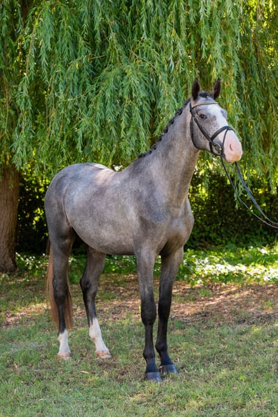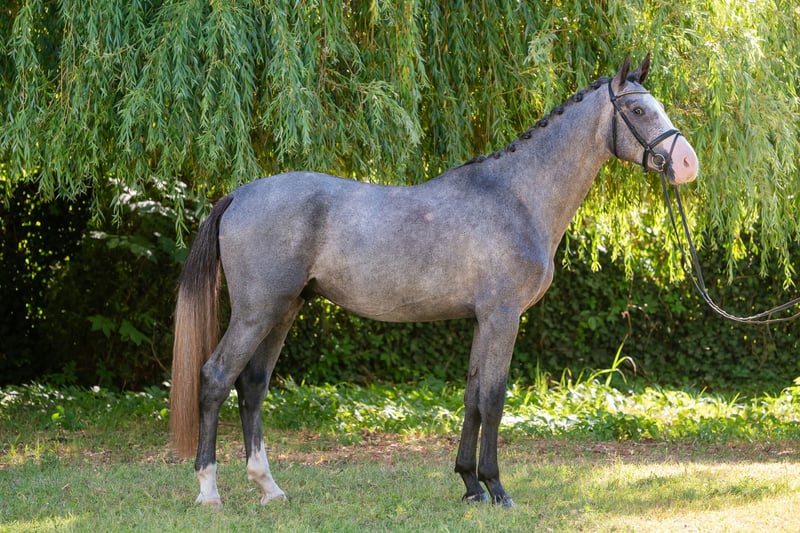**Zu verkaufen: Außergewöhnlicher ungarischer Sportpferdehengst** Wir präsentieren einen atemberaubenden ungarischen Sportpferdehengst, geboren im Jahr 2022. Diese auffällige graue Schönheit hat eine beeindruckende Größe von 177 cm und ist bereit, in der Dressurarena zu glänzen. Mit einer starken Abstammung und außergewöhnlicher Konformation zeigt dieser junge Hengst ein bemerkenswertes Temperament und eine Lernbereitschaft, die ihn zu einem idealen Kandidaten für sowohl wettkampforientierte als auch freizeitorientierte Reiter macht. Seine Bewegungen sind fließend und ausdrucksstark und zeigen das Potenzial für Erfolge in der Dressur. Dieses Pferd ist nicht nur ein großartiger Athlet, sondern besitzt auch eine sanfte und freundliche Wesensart, die ihn leicht zu handhaben und mit ihm zu arbeiten macht. Ob Sie nun Wettkämpfe bestreiten oder einfach nur das Vergnügen des Reitens genießen möchten, dieser Hengst ist bereit, Sie zu neuen Höhen zu führen. Verpassen Sie nicht die Gelegenheit, diesen außergewöhnlichen jungen Hengst zu besitzen. Kontaktieren Sie uns für weitere Informationen und um einen Besichtigungstermin zu vereinbaren. Ihr zukünftiger Dressurpartner wartet auf Sie!