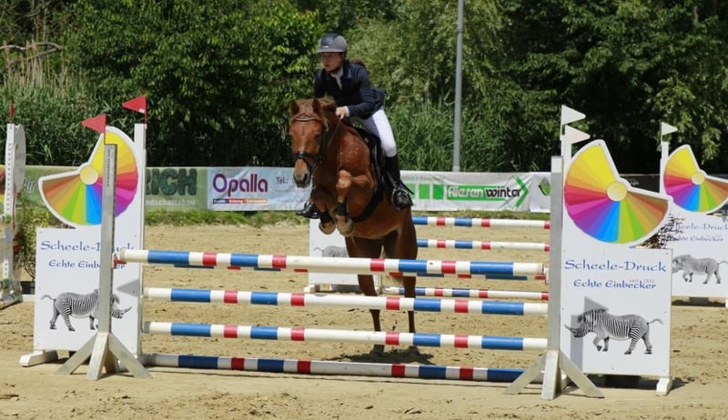 Scotch ist 2020 bei uns auf dem Hof zur Welt gekommen und in einer Gruppe gleichaltriger aufgewachsen. Er ist ein gelehriges Pony welches sich in allen drei Grundgangarten sehr gut sitzen lässt. Am Sprung zeigt er ein exzellentes Vorderbein. Zur Zeit geht er im Turniersport Springpferdeprüfungen der Klasse A* und A**. Er wird nur auf Trense geritten. Die Mutter Cherie (135 cm) war selbst mehrfach siegreich in A-Springen gegen Großpferde – geritten von Kindern – und überzeugte selbst durch Einstellung und Verlässlichkeit am Sprung. Vater Szenario ist im Pacourse bis zur Klasse S erfolgreich gewesen. Seine sechsjährige Halbschwester Cotton Candy geht ebenfalls erfolgreich im Springsport. Rimondo: Scotch 60 Instagram: sportpferdezuchtdr.bartels