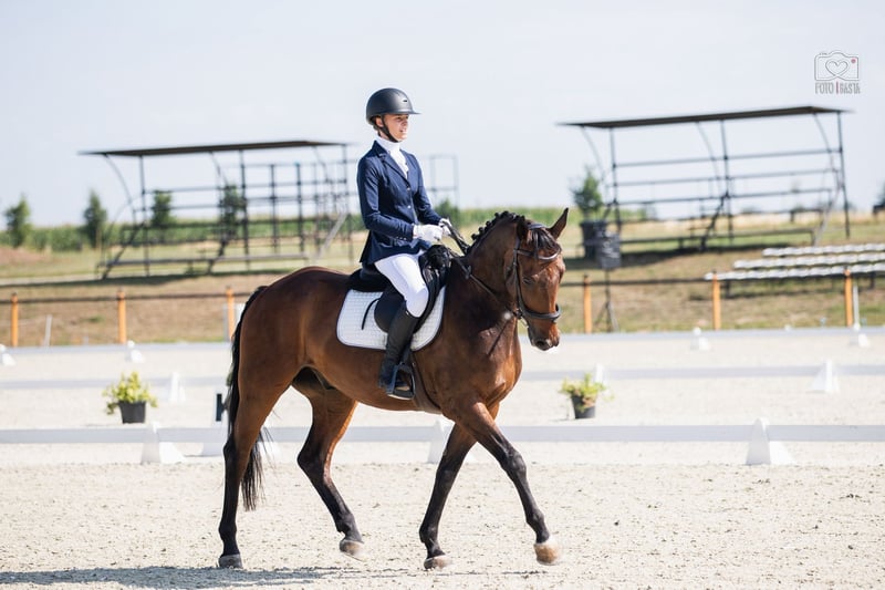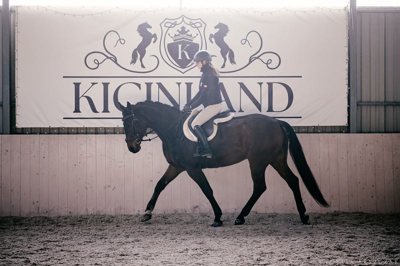 Mac Dona se comporta de manera ejemplar durante el cuidado, con el herrador y en el transporte. Actualmente compite a nivel de A en doma y aprende muy rápido. Es muy agradable de montar. Cuenta con radiografías limpias. Disponemos de más caballos y ponis. Puedes encontrarnos en Instagram como Kicinland. Es posible el transporte dentro de la Unión Europea.