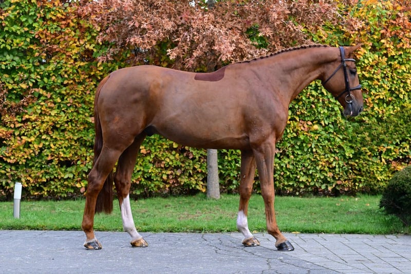 This eye-catching five-year-old chestnut gelding is a son of Olympic van den Heuvel, himself a proven offspring of L’Arc de Triomphe. On the dam’s side, the quality continues with the powerful sires Mylord Carthago and Thunder van de Zuuthoeve. Olympic de Lazezou is a pleasure to ride and suits a wide range of riders. As the jumps go up, he shows exactly what he’s made of: natural carefulness, power, and a great mindset. He is a true all-round match — suitable for both the ambitious amateur and the professional rider. A cooperative, enjoyable horse that brings joy in everyday training and has all the ingredients to continue developing in the sport. If you’re looking for a quality horse with excellent rideability and real future potential, this is the one. In the case of direct export to non-EU countries, VAT is no longer applicable (21% becomes 0%). If the export is delayed (but happens as soon as possible), the VAT will be refunded after we have received the official export document (which is drawn up by customs).