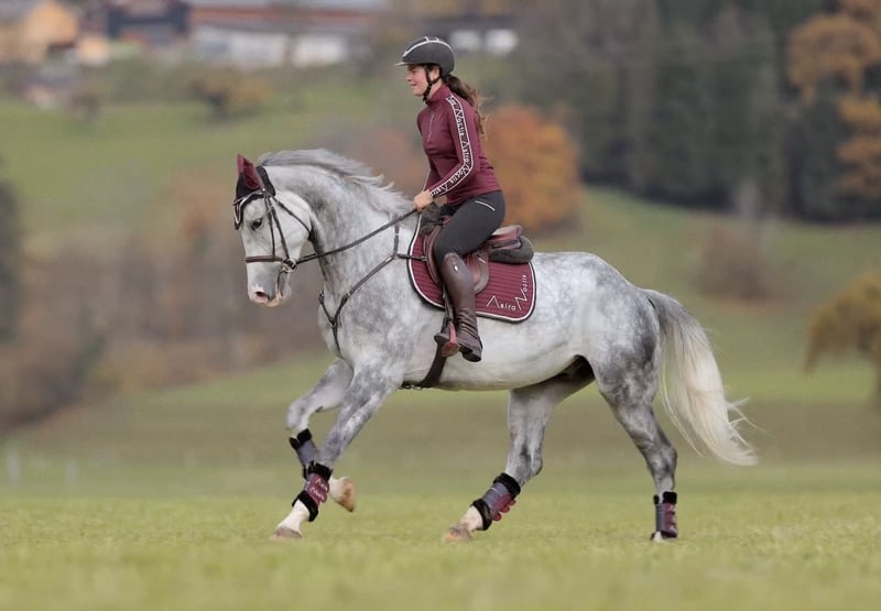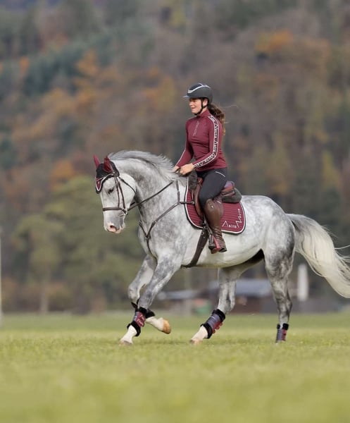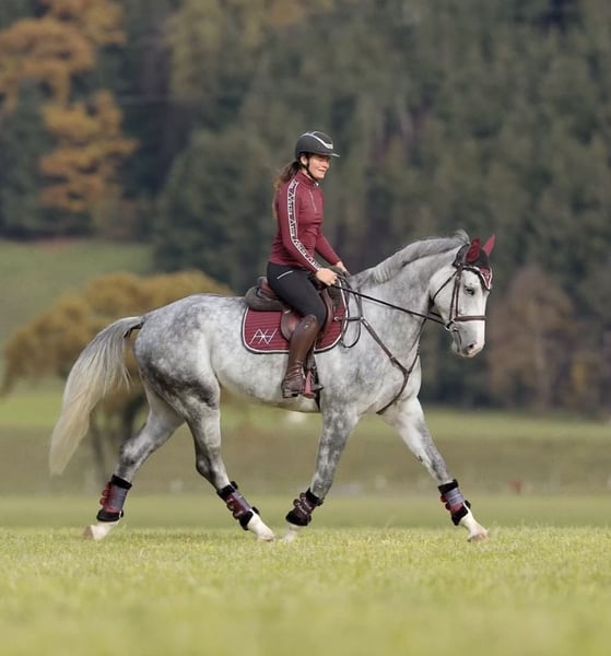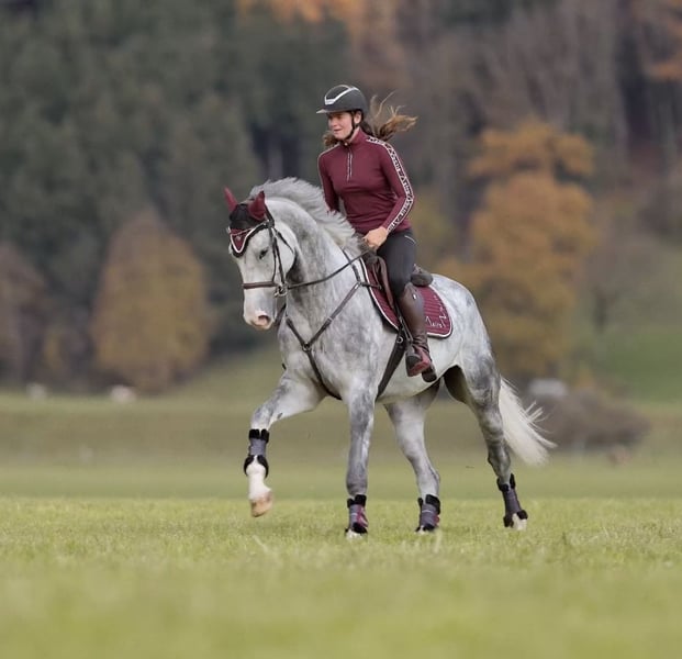 Domino d’aubry – 5-jähriger Wallach von Anayal d’aubry x Cartier van de Heffinck ✨ Ein echtes Qualitätspferd mit allem, was das Reiterherz begehrt! Domino überzeugt durch seinen Luxus-Charakter, seine beeindruckende Erscheinung (ca. 1,73 m) und seine Rittigkeit auf höchstem Niveau. Er verfügt über wunderschöne, elastische Grundgangarten, lässt sich leicht sitzen und punktet mit einem großen, kraftvollen Galopp. Am Sprung zeigt er sich stets mit Übersicht, Vermögen und Herz – springt immer auf die andere Seite, ist nicht guckig oder schreckhaft und vermittelt seinem Reiter jederzeit ein sicheres, gutes Gefühl. Domino ist fein im Maul, steht konstant angenehm an der Hand und beherrscht bereits fliegende Galoppwechsel. Im Gelände ist er absolut brav, ob alleine oder in der Gruppe, und auch Verladen, Transport und fremde Plätze meistert er souverän. Er war bereits auf dem Turnier und ist in einer Springpferdeprüfung erfolgreich 0 gelaufen. Er hat sich auch dort cool und abgeklärt gezeigt. Im täglichen Umgang ist Domino ein echter Schatz – verschmust, menschenbezogen, unkompliziert und sozial verträglich mit anderen Pferden. Ein Pferd, das wirklich jeden Tag Freude macht! 💫 📋 Klinischer TÜV und aktuelle Röntgenbilder liegen vor. 📞 Anfragen bitte ausschließlich telefonisch. 🐴 Probereiten: 30 €