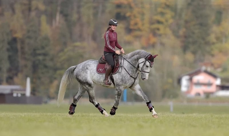 Domino d’Aubry – cavallo da 5 anni, stallone di sangue di Anayal d’Aubry x Cartier van de Heffinck ✨ Un vero cavallo di qualità, con tutto ciò che il cavaliere desidera! Domino si distingue per il suo carattere di lusso, la sua presenza imponente (circa 1,73 m) e la sua altissima maneggevolezza. Dispone di andature di base meravigliose ed elastiche, si lascia facilmente sedere e si distingue per un trotto ampio e potente. Ai salti dimostra sempre sicurezza, capacità e cuore – salta sempre dall’altra parte, non è nervoso né spaventato e trasmette al suo cavaliere un senso di sicurezza e fiducia. Domino è delicato in bocca, si mantiene costantemente morbido in mano e già esegue cambi di galoppo volanti. In campagna è assolutamente tranquillo, sia da solo che in gruppo, e affronta con sicurezza il carico, il trasporto e i luoghi sconosciuti. Ha già partecipato a gare e ha ottenuto un risultato positivo in una prova di salto ostacoli. Anche in quell’occasione si è dimostrato calmo e composto. Nel quotidiano, Domino è un vero tesoro – affettuoso, socievole, semplice e socialmente compatibile con altri cavalli. Un cavallo che rende felici ogni giorno! 💫 📋 Certificato veterinario e radiografie aggiornate disponibili. 📞 Per richieste, si prega di contattare esclusivamente telefonicamente. 🐴 Prova di monta: 30 €