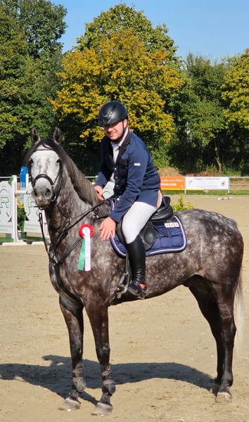 Mafamalio is a four-year-old who came directly from the breeder to us. He has placements in show jumping classes from A to M, currently multiple winners in L-level jumping and repeatedly highly placed in M*. He has a lot of go to the jump and always wants to go to the other side. We can easily imagine him as a suitable partner for a rider transitioning from pony riding or a young rider with basic experience. He enjoys hacking out, is farrier- and loading-friendly.