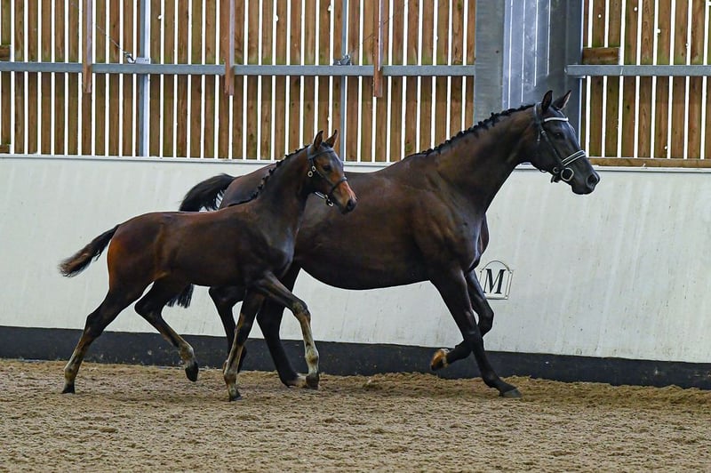 Una puledra moderna ed elegante di qualità superba, con 3 andature eccellenti e un temperamento affascinante e addestrabile. Pedigree di classe mondiale da For Dance x Zirkon x Blue Hors Zac Ben gestita e molto intelligente. È molto orientata alle persone. Disponibile al momento dello svezzamento nel Regno Unito (il prezzo è in sterline ed è negoziabile per la casa giusta). Cerca una casa per il dressage agonistico dove possa esprimere il suo potenziale. Una cavalla Pramien il cui nonno è Blue Hors Zac. Ha un eccellente movimento e un temperamento gentile. Ha un figlio che è stato mantenuto come stallone in Germania.