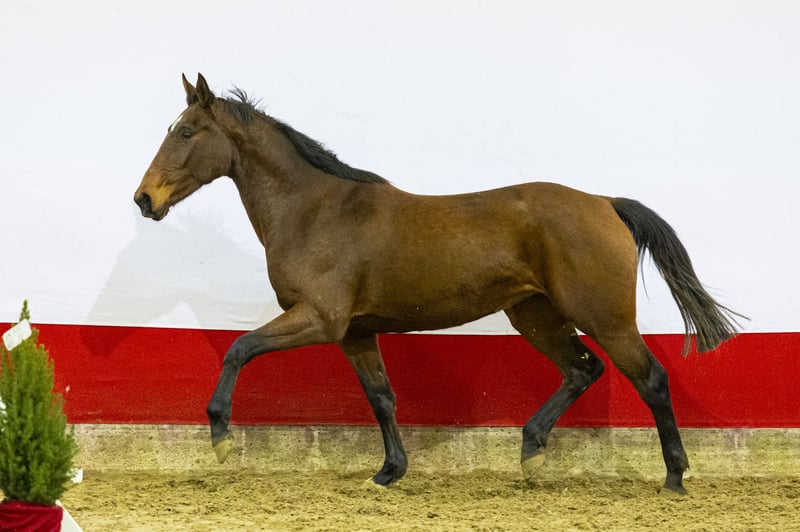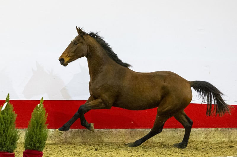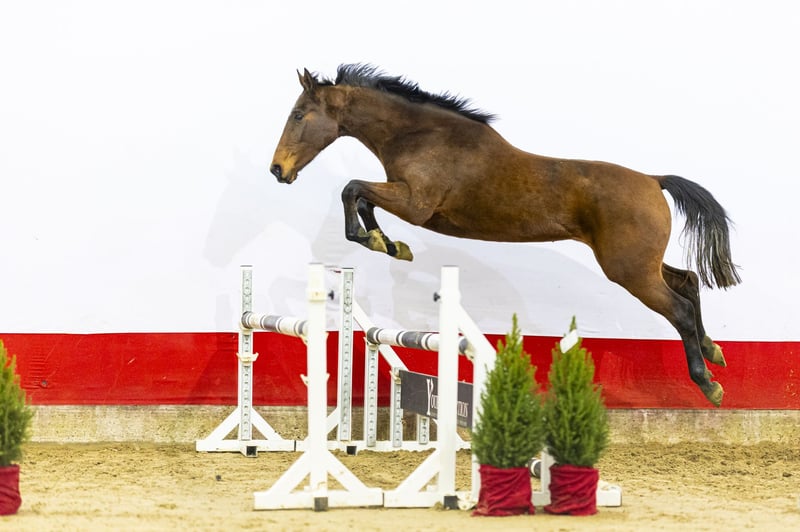 https://youhorse.auction/en/auction/Toffifee-M-OBAILEY-VH-BROUWERHOF-x-AMOR-DE-KALVARIE-5490 Toffifee M is a modern, blood-type filly with a sharp jumping style. She is light-footed, quick off the ground and shows a nice finish over the jump. Her movement is loose, elastic and naturally athletic. She is drawn to the jump and already shows reflexes and willingness at a young age. An interesting yearling for anyone looking for a modern sporthorse with future potential. Her sire O’Bailey vh Brouwershof N.O.P. (Darco) competed at the highest level, and his offspring are known for their scope, mentality and lightness. Her dam Cilka de Kalvarie produced the approved stallion Joop, and the granddam has already produced multiple horses jumping 1.40m and above. This makes Toffifee M part of a proven performance family with reliable sport genes. With her type, pedigree and natural athletic ability, Toffifee M shows all the ingredients for a promising future in sport. This horse was previously auctioned, but as the buyer did not meet his obligations, the payment was never completed. The horse itself is exactly as described. Perhaps it’s no coincidence the previous buyer didn’t pay — this horse was simply meant for you! INFORMATION Date of birth 09-06-2023 Gender Mare Color Bay Studbook AES Height 161 VAT 21.00%