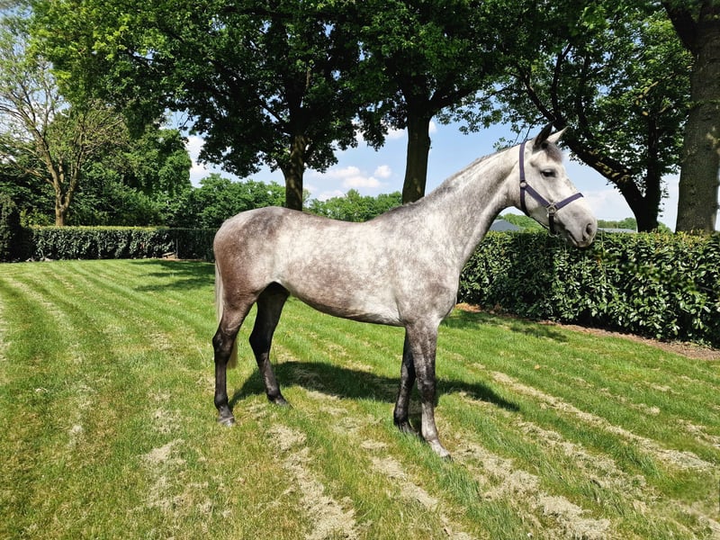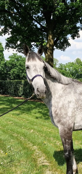 Quality Homebred 2019 Mare By Valmy de la Lande (Mylord Carthargo) (Jumps 1.60m with Jack Whitaker) Storm is a beautiful model of a horse with a lovely nature and plenty of blood. She is as light as a feather to ride with a soft snaffle mouth. Has loose paces & plenty of power. She could be good enough to do pure dressage if chosen. Storm is currently jumping 1.20m at shows and is brave and careful. And there is plenty more scope for more in the future! She has been Cross Country schooling in the woods and really enjoyed herself. She could go on to do any job! Her sire Valmy de la Lande is by the international superstar Mylord Carthago and uterine brother to international grand prix jumper Norway de la Lande. Valmy's damsire Starter was one of the foundation stables of modern SF breeding. Valmy's sports results are exceptional for a horse of his age, with an ISO index of 151 putting him in the top 2% of all competing horses in France. Michael Whitaker is quoted as saying “it's the best horse I've ever sat on”. She has no stable vices, enjoys hacking in the woods and is a pleasure to have in the yard. Storm is now looking for her forever home for someone to enjoy and progress in any career. FIT & HEALTHY, never seen the vet apart from vaccinations. Videos of Storm can be found on our YouTube channel: https://youtube.com/playlist?list=PLHasGqJbWYkgvqA-aM54bZu_w23wy2nBw&si=SVEOQeEK8Jf2ny2R We are a small breeding yard so have a selection of horses for sale of different ages. Please contact us if you are looking for something special straight from the breeder. Visit our website: WWW.ICSPORTHORSES.COM