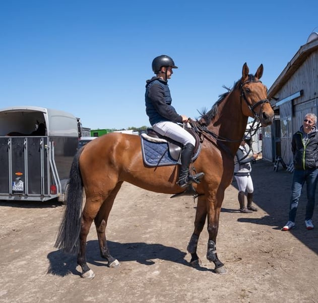 I would like to introduce a young mare with potential for high sport. Very feminine build, eye-catching elegance. She has a strong character - is confident, dependable and eager to learn. She shows very fast improvement in jumping training. Not afraid of colorful or complicated obstacles. Regularly vaccinated, checked by a dentist and shoeing. No issue with transportation. Hassle-free with grooming procedures. Very composed and calm at competitions despite her young age. Currently in regular jumping training. Normandie's sire competes in Longiness competitions in the 145 class. If you’re looking for a horse with the talent, character, and potential to excel, this could be the perfect choice. For further information, videos, or to arrange a viewing, please contact me.