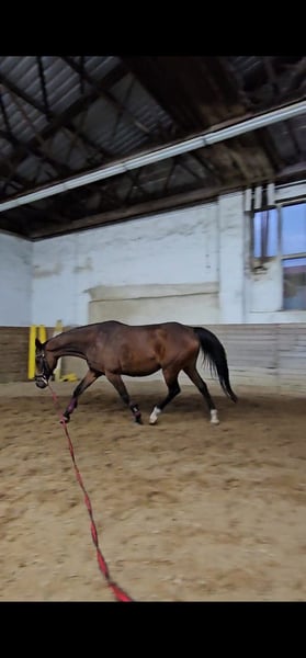 Cette jolie jument est proposée à la vente en tant que jument de reproduction ou de complément. Elle présente une formation au niveau de l'articulation du capal, qui ne cause actuellement aucun problème, mais dont l'évolution future reste incertaine. La jument n'est pas boiteuse ni malade à l'heure actuelle. Elle a également été montée ici, mais en raison d'un manque de temps, elle n'a pas été utilisée depuis longtemps. Elle n'est pas proposée en tant que cheval de sport ou d'équitation.