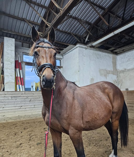Ta ładna klacz jest oferowana jako klacz hodowlana lub do utrzymania w stajni. Ma narośl w stawie kapsułkowym, która jak dotąd nie sprawia problemów, ale jej przyszły przebieg jest niepewny. Obecnie klacz nie jest kulawa ani chora. Była również tutaj użytkowana w jeździectwie, jednak ze względu na brak czasu od dłuższego czasu nie jest już regularnie jeźdzona. Wyraźnie zaznaczamy, że nie jest sprzedawana jako koń do jazdy.