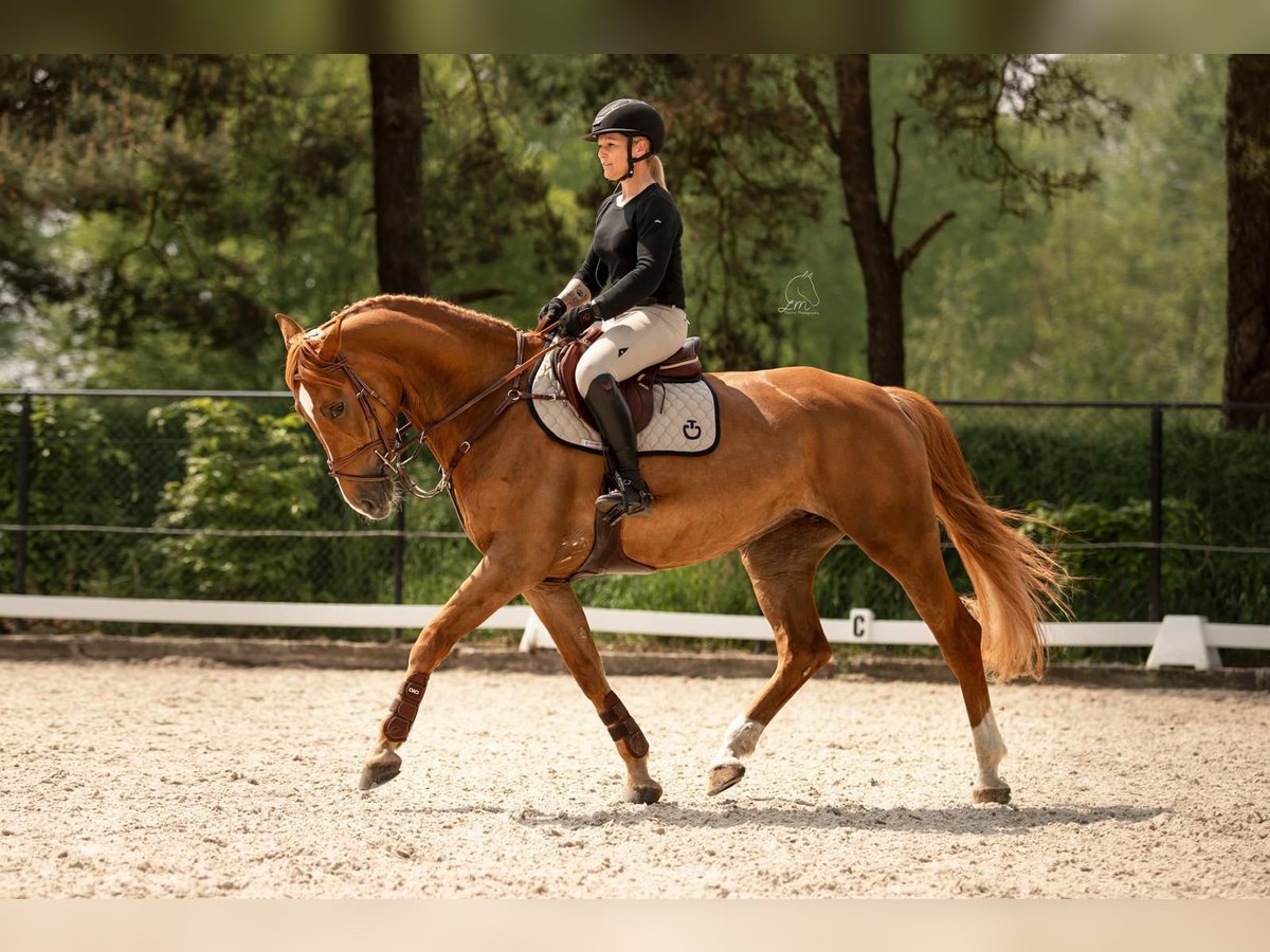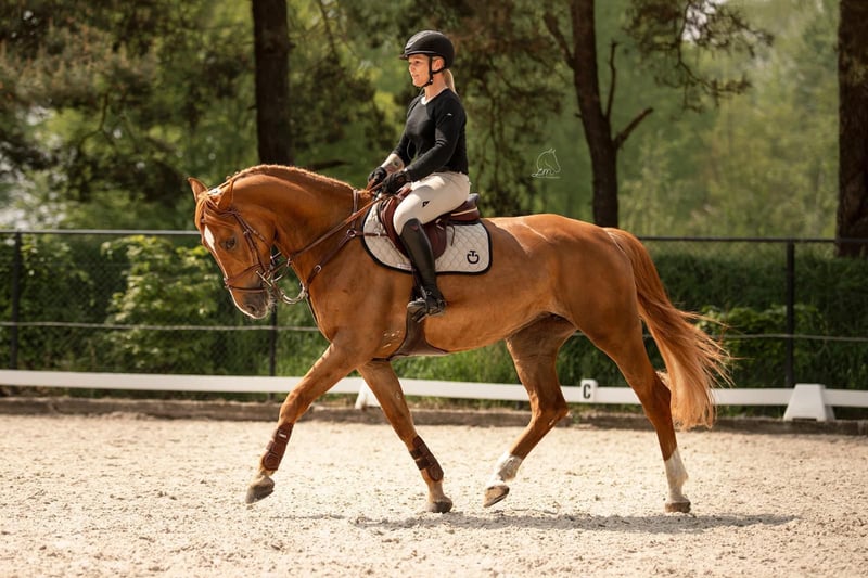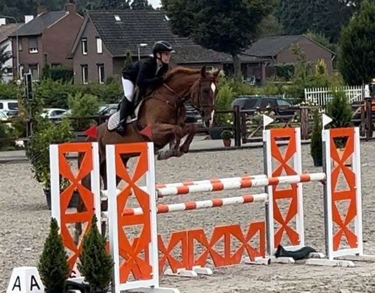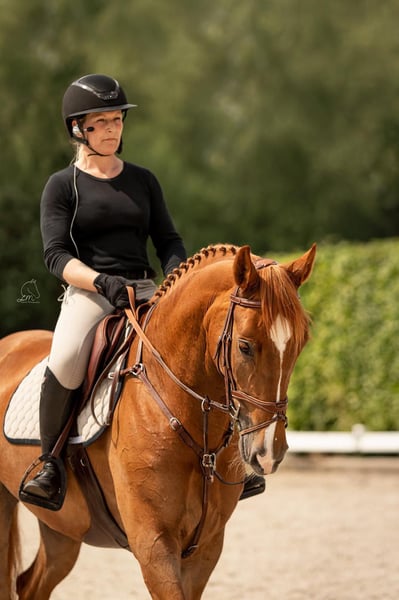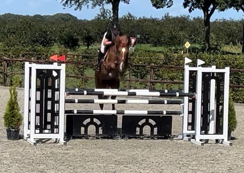 https://esha.horse/Auctions/Item/5597 Idefix is een chique, grootramige merrie met enkele mooie witte aftekeningen. Ze meet 1,67 m en heeft veel uitstraling. In de omgang is ze een heerlijk en makkelijk paard: ze is dol op aandacht en knuffels en heeft geen stalgebreken. Ze gedraagt zich voorbeeldig bij de smid en is probleemloos tijdens transport. Ze geniet van buitenritten en is verkeersmak. In het dressuurwerk is ze fijn en eenvoudig te rijden, waardoor ze geschikt is voor vrijwel elke ruiter. Bij het springen is ze scherp, snel en zeer voorzichtig, wat haar vooral geschikt maakt voor een ervaren ruiter. Verder heeft ze een droomafstamming en komt ze uit een echt sportstammetje. Ook voor de fokkerij is ze zeer interessant. Idefix is an elegant, large-framed mare with a few lovely white markings. She stands 1.67 m tall and has a striking presence. She is a delightful and easy horse to handle, loves attention and cuddles, and has no stable vices. She behaves perfectly for the farrier and travels easily. She enjoys hacking out and is traffic-proof. In dressage work she is easy to ride and suitable for almost any rider. When it comes to jumping, she is sharp, quick, and very careful, making her best suited for an experienced rider. She has a dream pedigree and comes from a true sports family. She is also very interesting for breeding. Idefix est une jument chic, avec un grand cadre et quelques jolies marques blanches. Elle mesure 1,67 m et a beaucoup de présence. C’est un cheval agréable et facile à gérer, qui adore l’attention et les câlins, et qui n’a aucun vice d’écurie. Elle se comporte parfaitement avec le maréchal-ferrant et voyage facilement. Elle aime les balades en extérieur et n’a pas peur du trafic. En dressage, elle est facile à monter et convient à presque tous les cavaliers. À l’obstacle, elle est vive, rapide et très prudente, ce qui la rend surtout adaptée à un cavalier expérimenté. Elle possède une lignée de rêve et provient d’une véritable famille sportive. Elle est également très intéressante pour l’élevage. Idefix ist eine elegante, großrahmige Stute mit einigen hübschen weißen Abzeichen. Sie ist 1,67 m groß und hat viel Ausstrahlung. Im Umgang ist sie ein äußerst angenehmes und unkompliziertes Pferd, das Aufmerksamkeit und Zuneigung liebt und keine Stallmängel hat. Sie zeigt sich vorbildlich beim Schmied und lässt sich problemlos transportieren. Sie liebt Ausritte und ist verkehrssicher. In der Dressurarbeit ist sie einfach zu reiten und für fast jeden Reiter geeignet. Beim Springen ist sie aufmerksam, schnell und sehr vorsichtig, weshalb sie am besten zu einem erfahrenen Reiter passt. Sie verfügt über eine traumhafte Abstammung und stammt aus einer echten Sportlinie. Auch für die Zucht ist sie sehr interessant.