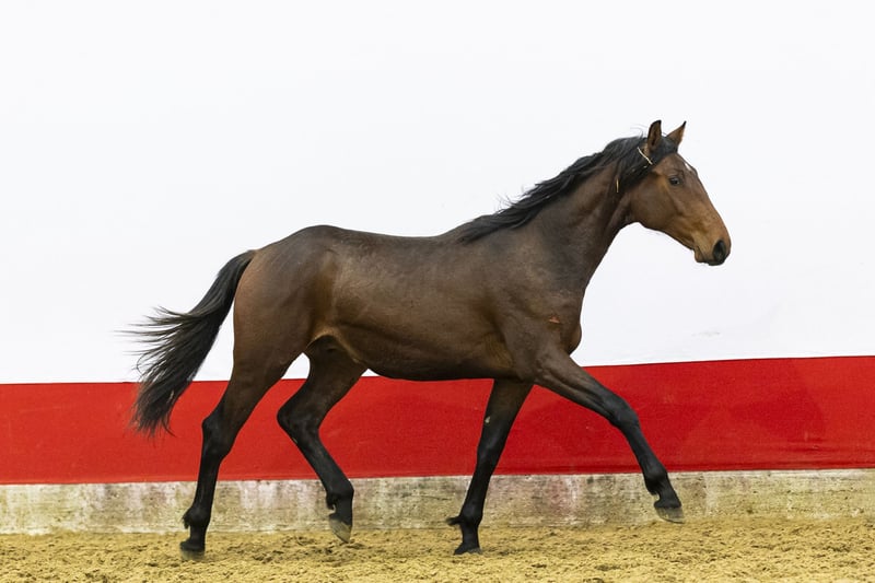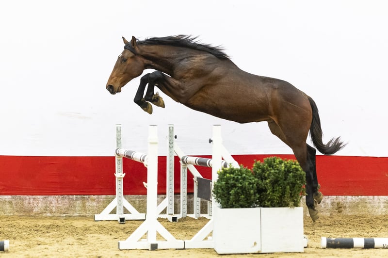 He shows a good jumping technique and has grown significantly in height and development over the last period. This is reflected in his body and overall presence. Although he still needs to build more strength, his natural carefulness and correct attitude over the fences are already clearly visible. He jumps with overview and shows willingness to work. His canter is spacious and balanced, his trot correct and functional. Everything indicates that he is still very much in development. A horse with scope, mentality and quality – a true rough diamond. It would not surprise us to see him competing in the higher classes in the future.