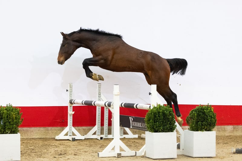 De tweejarige Hazelberg’s Thunderbolt is een mooie donkerbruine met goede bewegingen. Hij springt met macht en voorzichtigheid. Vader High Five is een achtjarige AES-goedgekeurde hengst van Casall uit de befaamde 1.60m Grand Prix-merrie Pialotta, gereden door Rolf-Göran Bengtsson en Edwina Tops-Alexander. Moeder Krista Belle D (Quickfeuer van Koekshof) is een halfzus van Harley D (1.55m Grand Prix met Vasco Flores en Coco Fath), Fandilot D (1.50m springen met Niklaus Rutschi) en twee 1.30m springpaarden.