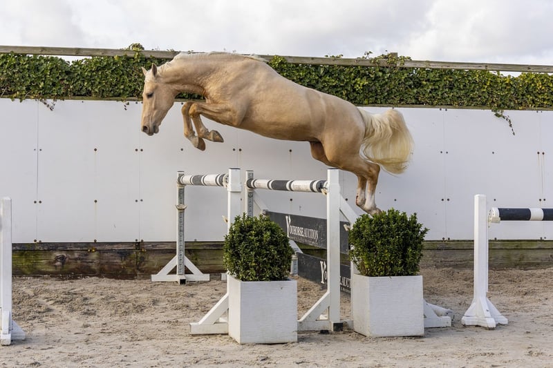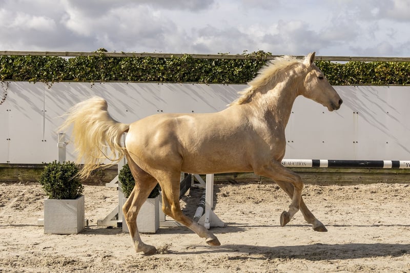 Richard is een palomino die direct opvalt als ware blikvanger, al is het alleen al door zijn kleur. Een paard met enorm veel uitstraling, zoveel dat hij van ons ook gerust “King Richard” genoemd zou mogen worden. Hij is zeer goed gebouwd en laat een goede sprong zien op het hout. Hij doet graag zijn best en toont een fijne instelling. Door zijn beweging en balans is hij bovendien interessant voor meerdere disciplines; ook in de dressuurring zou hij zeker niet misstaan. Hij beschikt over een fijne galop en een zeer goede draf en heeft het juiste bloed om mee te werken. Een paard dat niet alleen kwaliteit heeft, maar ook de looks en uitstraling om veel mensen aan te spreken. Naar onze mening een zeer interessant paard met veel charme en potentie. Vader Marquis is een palomino hengst met een sterke dressuurgerichte achtergrond, afkomstig van Edmundo en de Grand Prix dressuurlijn van Upperville. Hij geeft uitstraling, beweging en rijdbaarheid door. Moeder Miasia is een dochter van Parcival (PSG/Inter I) en brengt opnieuw dressuurkwaliteit en instelling in de lijn. De moederlijn is gefokt op dressuur en rijdbaarheid, met meerdere paarden die zich onderscheiden in de sport en fokkerij. Een interessante combinatie van uitstraling, beweging en instelling.