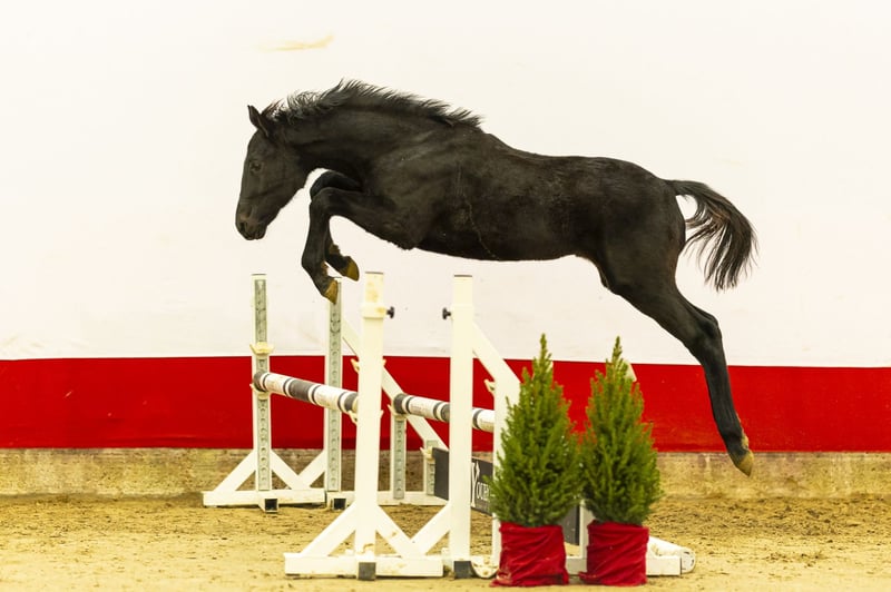 Dartien will turn one next year, but already is a horse to fall in love with. He is black, has a very attractive model and is long-lined and correctly built. He is very light-footed, well put together and shows a nice uphill frame, which later gives a confident feeling when riding with good front. In movement he shows a good trot and a well-carrying canter with plenty of balance. Over the jump he shows good technique and appears very easy with his scope. A very complete yearling, exactly the type we like to see. Sire Dorian Grey TN Z, by Dominator 2000 Z, competes at 1.40 m level and has international results in Vejer de la Frontera and Bonheiden. Dominator 2000 Z himself competed at 1.70 m Grand Prix level and is known for passing on scope, mentality and size, qualities clearly visible in Dartien. The damline is built for sport. Dam Sofia Cartien is by Stolzenberg, who himself competed at 1.45 m level and is known for producing rideable sport horses. Further down the damline, several horses performed above 1.30 m level, including Delisa at 1.45 m and Shmookh at 1.40 m. This family has produced sport horses over several generations, confirming the reliability of the line Dartien combines youthful presence, correct conformation, good movement and natural jumping technique with a sport-oriented pedigree, making him a very interesting young prospect for the future.