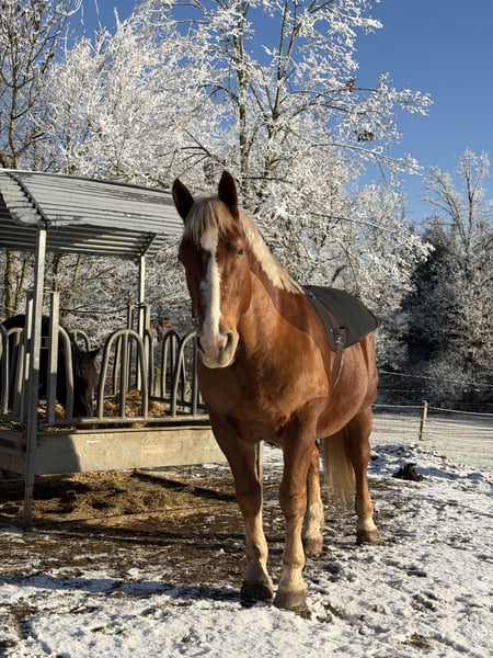 Met pijn in het hart, maar als alles klopt, bied ik mijn Zuid-Duitse koudbloedhengst te koop aan, omdat ik hem vanwege gezondheidsredenen niet meer de zorg kan geven die hij verdient. Severino staat sinds hij 3 jaar oud is bij mij en heeft een degelijke opleiding genoten. Tot op heden wordt hij nog steeds wekelijks onder het zadel gereden. Hij beweegt dressuurmatig zeer goed, maar houdt er ook van om af en toe kleine sprongen te maken. Bij de vorige eigenaar is hij waarschijnlijk ook uitgebracht, maar ik heb hem zelf nooit gereden. Ook vrijheidsdressuur en vooral cirkelwerk liggen hem erg, hij doet dit altijd met veel trots. In het terrein is hij echt een schatje; ik zou hem echter niet als beginnerspaard classificeren, omdat hij toch wat temperament heeft. Hij staat momenteel in een open stal en is hier, ongeacht met welk paard, altijd makkelijk in de omgang. Hij is viermaal beslagen en is in maart recent gecontroleerd door de osteopaat. Zijn tanden zijn ook in februari recent verzorgd. Hij is altijd gezond geweest, maar heeft een eenzijdige keelhalsslijmvliesverlamming en ziet op één oog slechts omtrekken – dit was voor ons nooit een probleem, zowel in het terrein als op de piste of in de bak. Hij wordt expliciet niet in box gehouden verkocht, omdat ik dat voor hem niet wens. Geen noodgeval, verkoop zonder toebehoren, maar kan op verzoek worden mee overgenomen (nieuw Deuber-zadel uit februari 2026). Bij vragen hoor ik het graag!