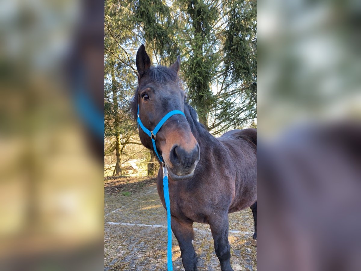 Süddeutsche Kaltblutstute, geboren 2006, ca. 165 cm Stockmaß, seit mehreren Jahren in unserem Besitz. Sie wurde zweispännig gefahren und freizeitmäßig geritten. Im Umgang ist sie brav, menschenbezogen sowie schmiede- und verladefromm. Mit entsprechendem Vertrauen in den Reiter geht sie auch alleine ins Gelände. Unter dem Sattel sowie in der Bodenarbeit ist sie nicht für Anfänger geeignet, da sie eine klare, sichere Führung benötigt. Vor der Kutsche zeigt sie sich hingegen sehr fleißig, zuverlässig und entspannt. Sie kennt den Straßenverkehr sowohl in der Stadt als auch auf dem Land und bleibt dabei gelassen und unerschrocken. Trotz ihres Alters von 20 Jahren ist sie fit und gut in Form. Es sind keine Krankheiten bekannt. Aufgrund von Bestandsauflösung abzugeben. Auf Wunsch kann sie inklusive passendem Kutschgeschirr übernommen werden. Ein Kennenlernen und Probeschauen ist jederzeit nach Absprache möglich. Nur in gute Hände abzugeben. Platz vor Preis.