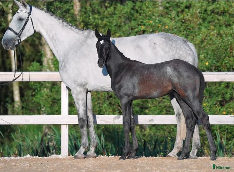 Doridenta EM, geboren am 25.05.14, Dorian Grey TN Z-Cardento-Fuego du Prelet-Darco, Mutter Quardenta –16, stammt von dem legendären Hengst Cardento ab, der kaum einer Einführung bedarf. Sie kommt aus derselben mütterlichen Linie wie der Hengst Orlando und hat Geschwister, die im hochklassigen Springreiten erfolgreich waren. Quardenta wurde im Alter von vier Jahren nach Schweden importiert und wurde im selben Jahr gedeckt. Sie hat vier feine Stutfohlen zur Welt gebracht und ist nun wieder tragend. Alle ihre Fohlen springen außergewöhnlich gut und haben eine vielversprechende Zukunft vor sich. Ihr ältestes Nachkommen, geboren 2021, gehört jetzt Sara Nilsson und hat sich für Elmia 2025 qualifiziert. Das 2022 geborene Fohlen gehört ebenfalls Sara, und das 2024 geborene Fohlen gehört jetzt Evelin Laven. Die mütterliche Großmutter Butterfly vd Ruitershoeve stammt von dem Hengst Fuego du Prelet ab, der aus der begehrten Blutlinie Jalisco B stammt. Sie hat Nachkommen, die im schweren Springreiten erfolgreich waren. Die Urgroßmutter Nefista vd Ruitershoeve stammt von dem Hengst Darco ab und hat selbst 140 cm gesprungen. Sie hat Nachkommen, die im schweren Springreiten erfolgreich waren, darunter ist sie die Mutter des bekannten, gekörten Hengstes Orlando, der viele fantastische Nachkommen hervorgebracht hat und umfangreich im Springreiten erfolgreich war. Kontakt ist telefonisch unter +46738093235. Mit freundlichen Grüßen, Michaela