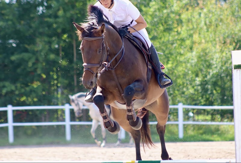 Karma Est ist eine SWB-Stute, eine Qualitätsrasse aus Schweden, die ich direkt vom Züchter gekauft habe. Als vierjähriges Pferd brachte sie ein Fohlen zur Welt und war dadurch etwas später in ihrer Entwicklungsphase. Karma ist ein vorsichtiges und elastisches Pferd mit Kraft und Sprungkraft. Sie hat in Schweden bis 1,20 m geprüft. Sie ist gut ausgebildet, leicht zu reiten und zu handhaben. Ein gesundes Pferd mit vollständigem Röntgenbefund (Nacken, Rücken und Beine) ohne Beanstandungen.