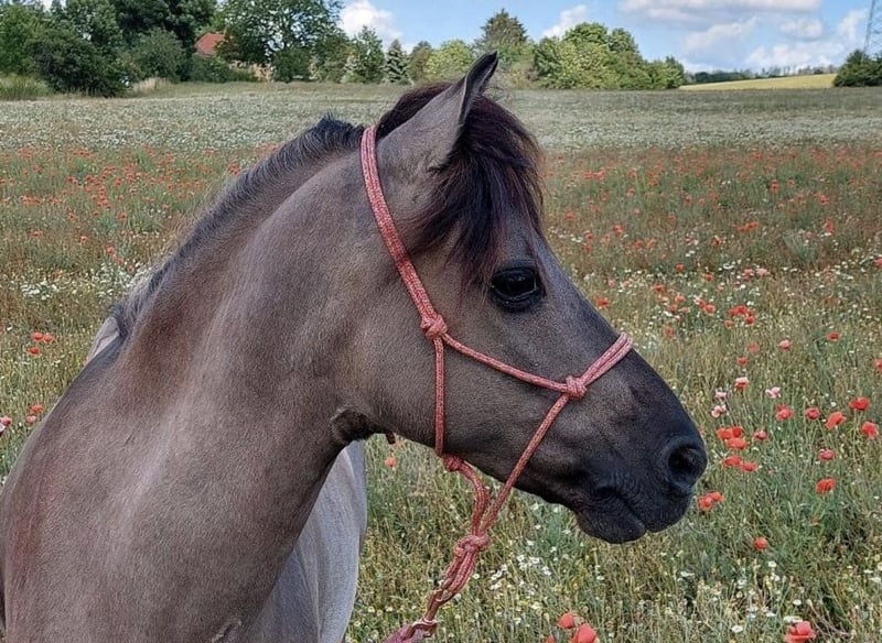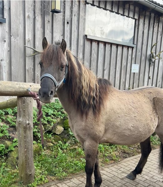 Unser wunderschöner Max sucht sein Herzensmenschen. Solange die Anzeige online ist sucht er noch. Aktuelle Longier und Reitvideos vorhanden. Wir haben ihn dieses Jahr gekauft von einer Familie wo das Mädchen ihm leider raus gewachsen war und wollten ihn für unsere Reitschule und haben dann schnell gemerkt das er damit nicht glücklich ist. Er macht alles ganz lieb und toll mit und will gefallen. Allerdings hat er ein zügigen Galopp der von den kleinsten (4-6jährigen) schwierig zu halten ist. Aber sonst auch für die kleinsten alles toll mit macht. Am liebsten wäre uns wenn er hier in unserem Aktivstall stehen bleiben könnte denn hier hat er tolle Pferdefreunde die er sehr mag und fühlt sich wohl. Aber natürlich darf er auch in ein passendes Zuhause umziehen. Wir können uns ihn auch für therapeutische Zwecke vorstellen. Max ist ein 1Ojähriges Tarpanmix-Pony mit einem Stockmaß von ca 1,25m und lebt in einer gemischten Herde. Und ist dort auch im mittleren Rang. Geimpft und entwurmt. Mit seiner Mausfalb-Farbe, der tollen dicken gewellten Mähne und dem Aalstrich ähnelt unser Max einem kleinen schicken Wildpony. Halbjährlich wurde er der Ostheopatin vorgestellt (zuletzt im Oktober 2025). Bei der Hufbearbeitung steht Max stets ruhig und brav. Max geht auch allein ins Gelände (geritten und zu Fuß). Dort läuft er auf jedem Untergrund zuverlässig in allen 3 Gangarten und lässt sich von kaum etwas erschrecken. Er geht gern ins Wasser und planscht darin herum. Bei einem Geländeritt mit mehreren Pferden läuft er zufrieden an verschiedenen Positionen in der Gruppe. Hat aber ein zügiges Grund Tempo. Er geht auch einwandfrei auf den Pferdehänger. Für Probe reiten nehmen wir 35 Euro. Wir bitten um eine kurze Bewerbung Anfragen wie wie ist der letzte Preis werden nicht beantwortet Transport wäre auch machbar